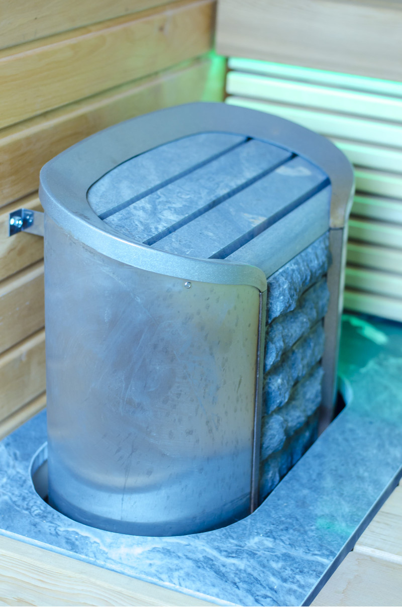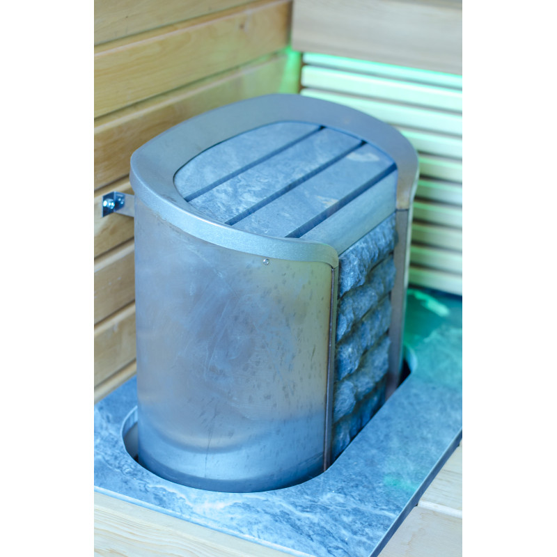 Η προστατευτική άκρη του καλοριφέρ είναι πέτρα γρανίτη. Ένας σωλήνας ατμού έχει εισαχθεί στη θερμάστρα από τη γεννήτρια ατμού της σάουνας ατμού, που επιτρέπει την επίτευξη πολύ υψηλότερης υγρασίας στο δωμάτιο της σάουνας. Όλα αυτά συνδυάζονται σε ένα κοινό σύστημα διαχείρισης. Αυτή είναι μια εξαιρετική επιλογή εάν δεν έχετε τις προϋποθέσεις για να εγκαταστήσετε χαμάμ και σάουνα.