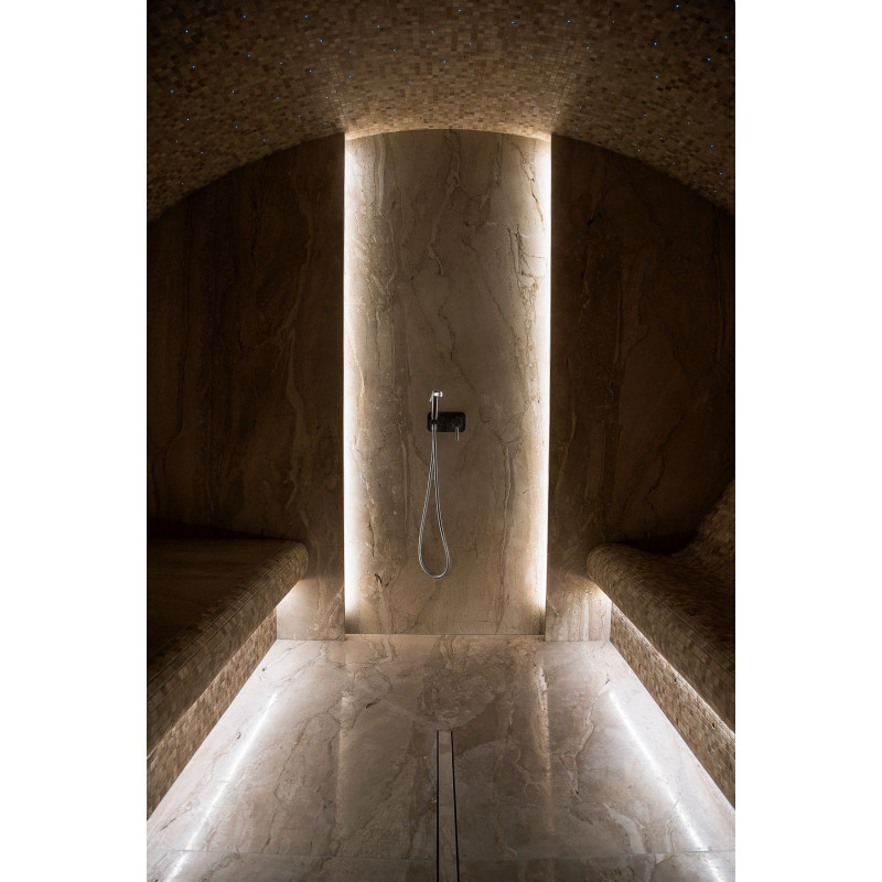 Εγκατεστημένο στο γαλλικό χιονοδρομικό κέντρο, Courchevel, σάουνα με λειτουργία ατμού και ατμόλουτρα.