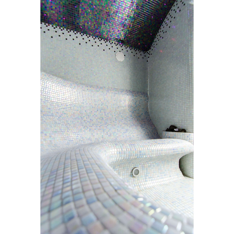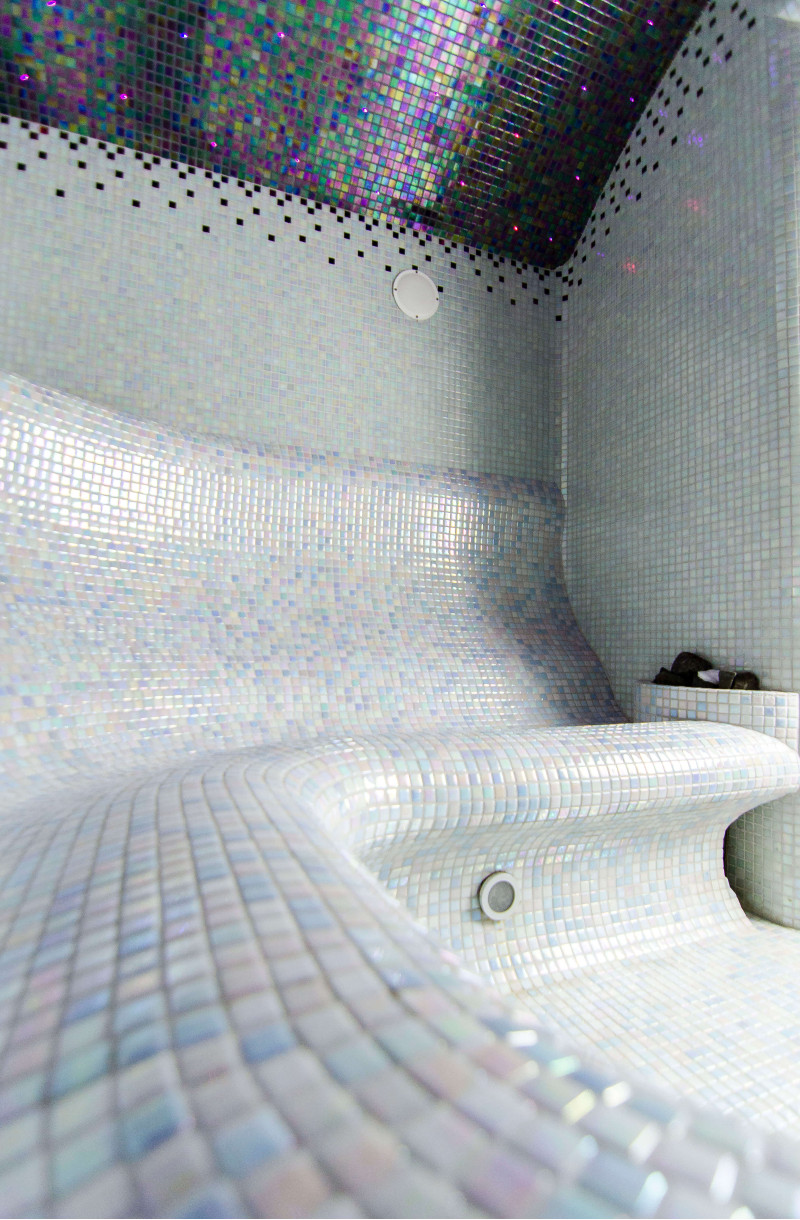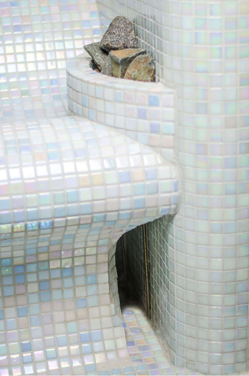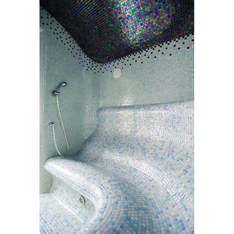 Οι πάγκοι της σάουνας ατμού, οι τοίχοι και οι οροφές κατασκευάζονται μεμονωμένα από ειδική εξηλασμένη πολυστερίνη. Οι οροφές έχουν σχήμα καμάρας, τυπικό για κάθε ατμόλουτρο, έτσι ώστε να μην μπορεί να συσσωρευτεί συμπύκνωμα ατμού πάνω τους. Καθιστικές θέσεις, καμπυλωτοί πάγκοι με άνετο σχήμα για ευχάριστη ξεκούραση στη σάουνα. Οι πάγκοι στραγγίζονται για να αποφευχθεί η συσσώρευση ιδρώτα και υγρασίας πάνω τους.