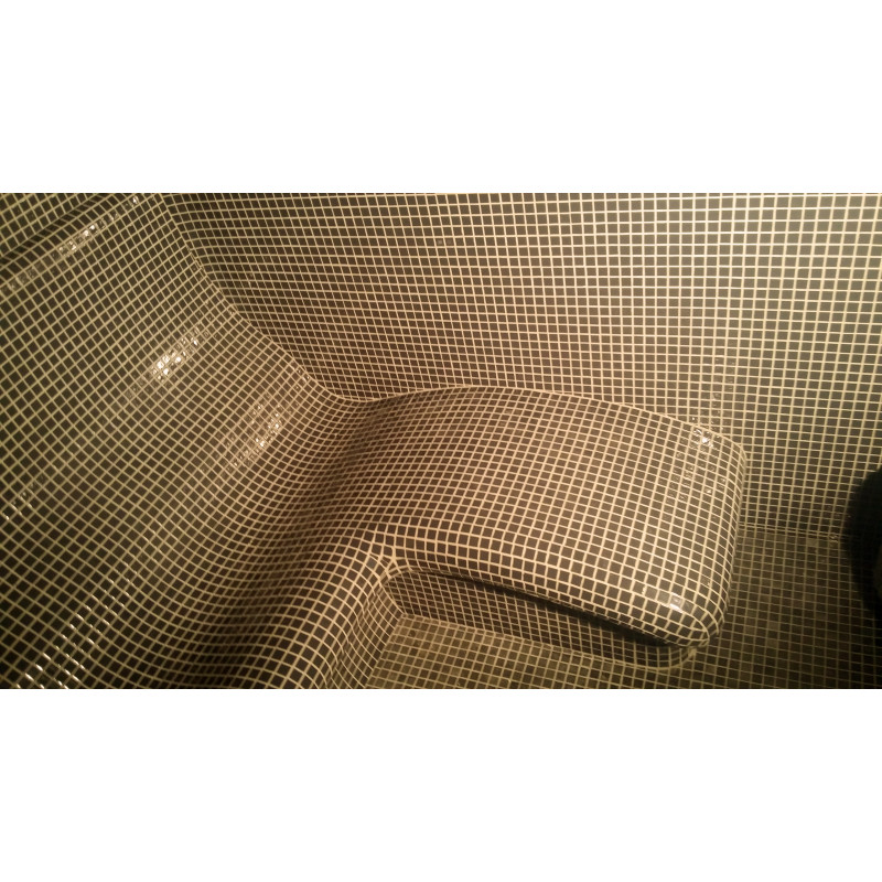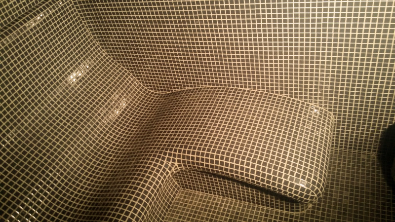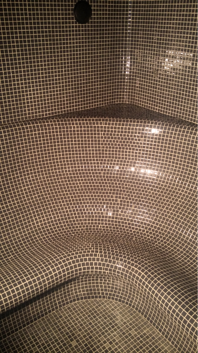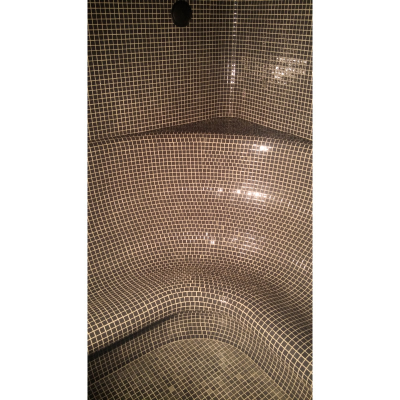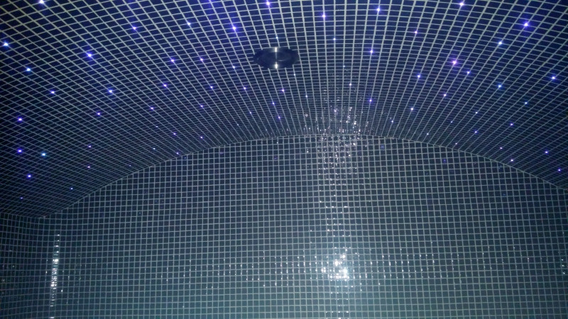Φινίρισμα - ολόκληρη η σάουνα είναι διακοσμημένη με πλακάκια μωσαϊκού από θρυμματισμένο γυαλί.