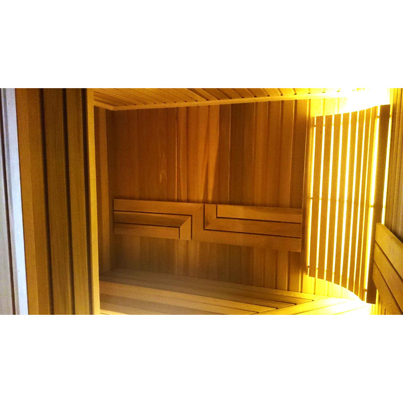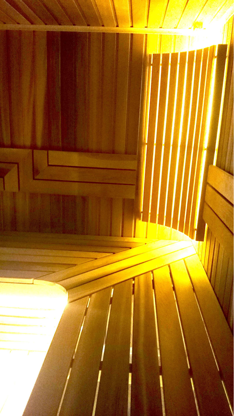Για τη σάουνα επιλέχθηκε ηλεκτρικός θερμαντήρας EOS Bi-O Max με γεννήτρια ατμού 8 λίτρων. Δημιουργεί πολύ ευχάριστο ατμό και υγρασία στη σάουνα. Το πλεονέκτημα της κατασκευής του θερμαντήρα είναι ότι οι πέτρες δεν έρχονται σε επαφή με τα θερμαντικά στοιχεία, γεγονός που παρατείνει τη διάρκεια ζωής. Ο θερμαντήρας ελέγχεται από το EOS EmoTouch II AF. Γεμάτο με πέτρες νεφρίτη 60 κιλών. Το Jadeite είναι μια μοναδική πέτρα για σάουνες, η οποία απελευθερώνει θεραπευτική ενέργεια όταν θερμαίνεται. Έχει αναλγητική, αντιτοξική και αντιφλεγμονώδη δράση.