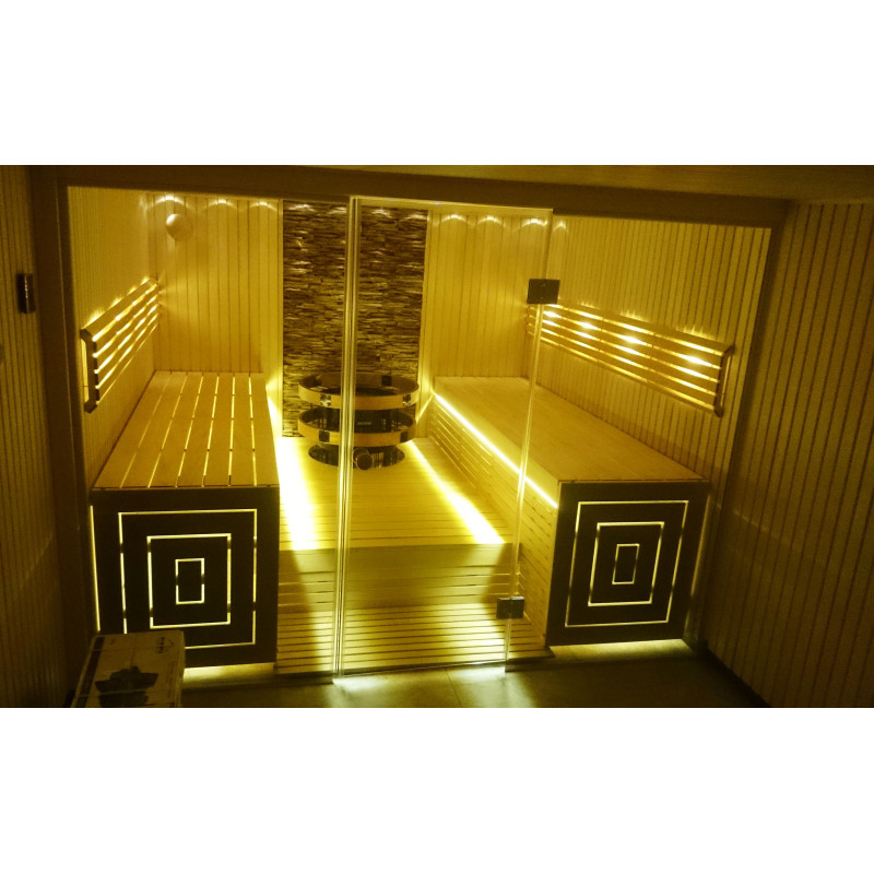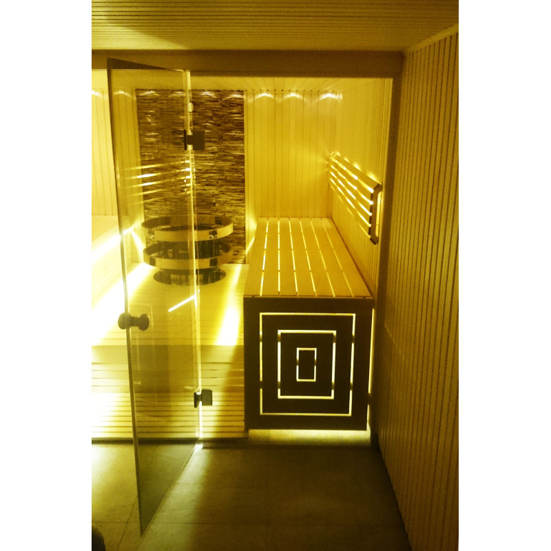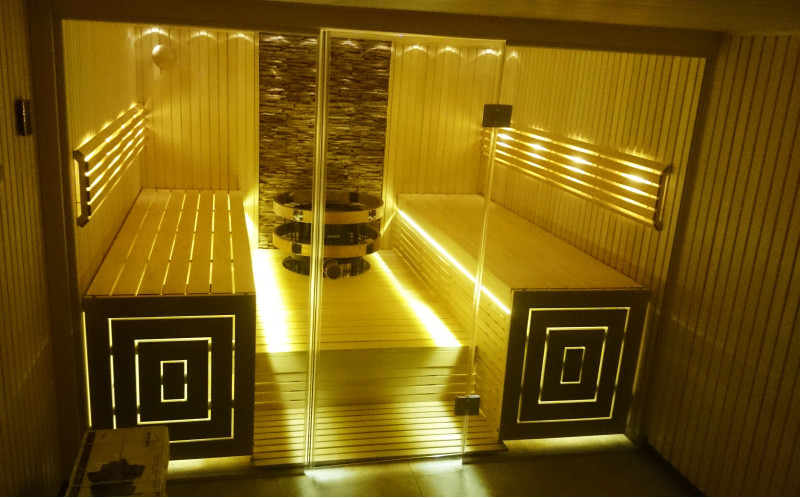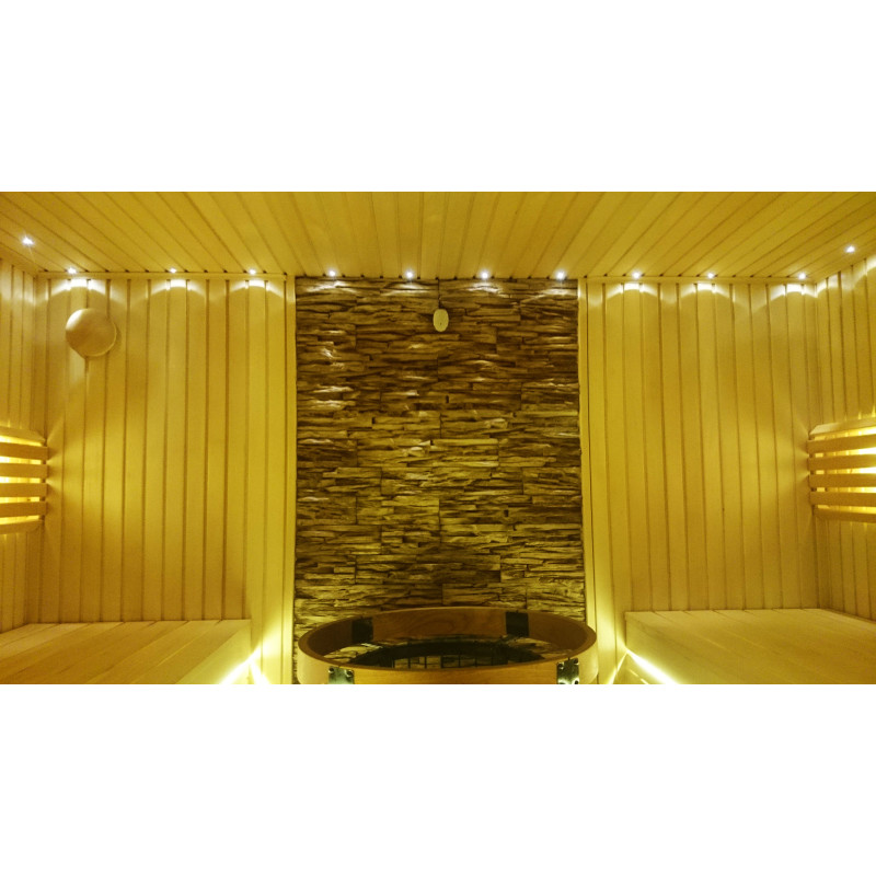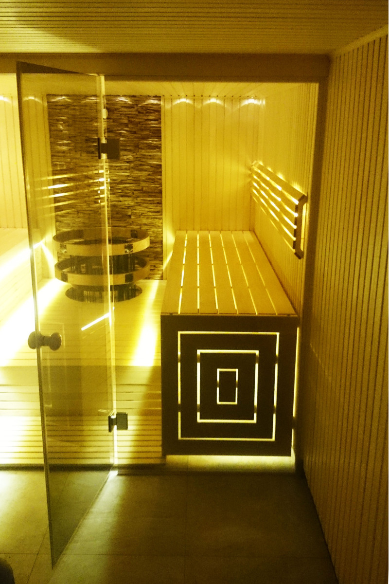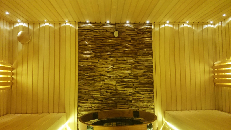 Για τη διακόσμηση της σάουνας επιλέχθηκε το ξύλο λάιμ υψηλής ποιότητας.