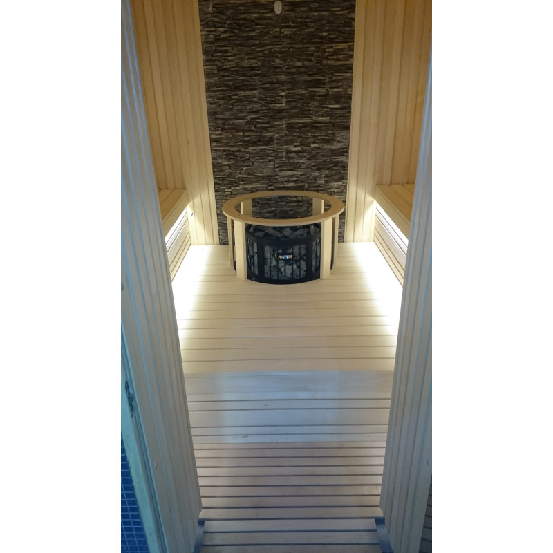 Το κύριο χαρακτηριστικό της σάουνας είναι η ηλεκτρική θερμάστρα Harvia Legend - μια θρυλική θερμάστρα τόσο για μεγαλύτερες όσο και για μικρότερες σάουνες. Δικαιολογεί απόλυτα το διάσημο όνομά του παράγοντας ατμό υψηλής ποιότητας και χαρίζοντας ευχαρίστηση τόσο στον λάτρη της σάουνας όσο και στον επαγγελματία. Λόγω του κυκλικού του σχήματος, μπορεί να τοποθετηθεί τόσο στη μέση της σάουνας όσο και να ενσωματωθεί στους πάγκους. Σε αυτή τη σάουνα, τοποθετείται προστατευτικός φράκτης γύρω από τη θερμάστρα για να αποτρέψει τους ανθρώπους να αγγίξουν κατά λάθος τη θερμαινόμενη θερμάστρα.