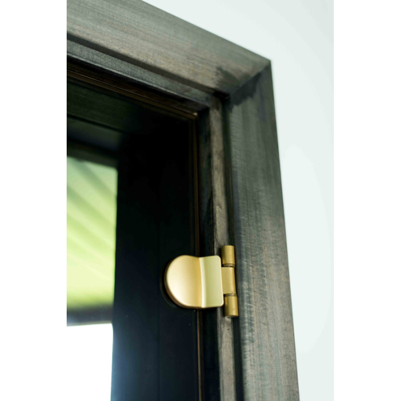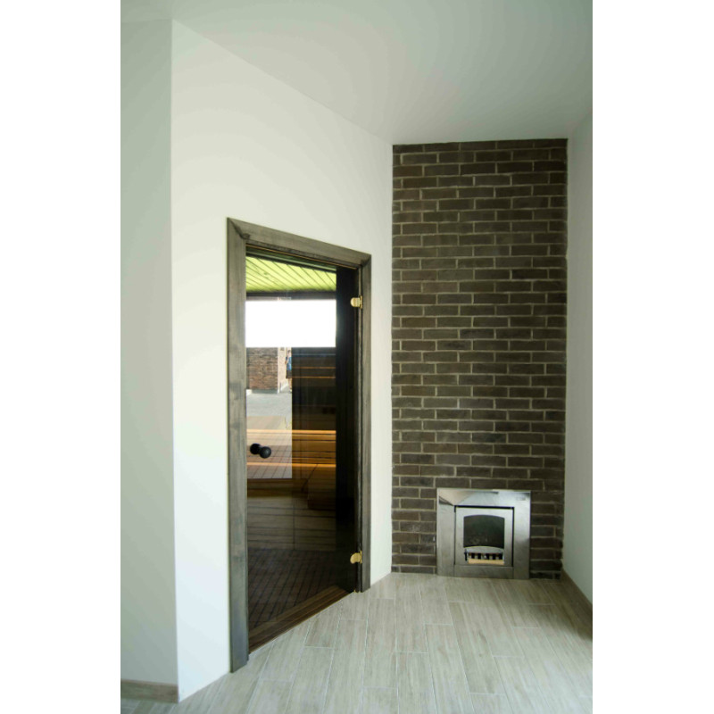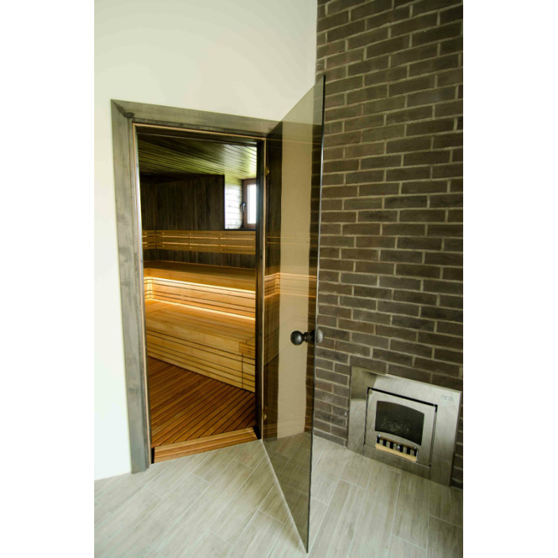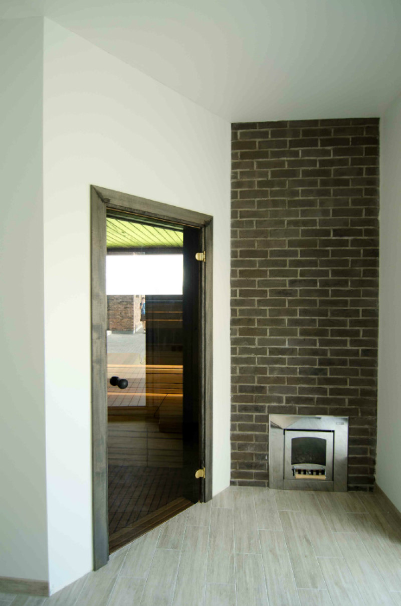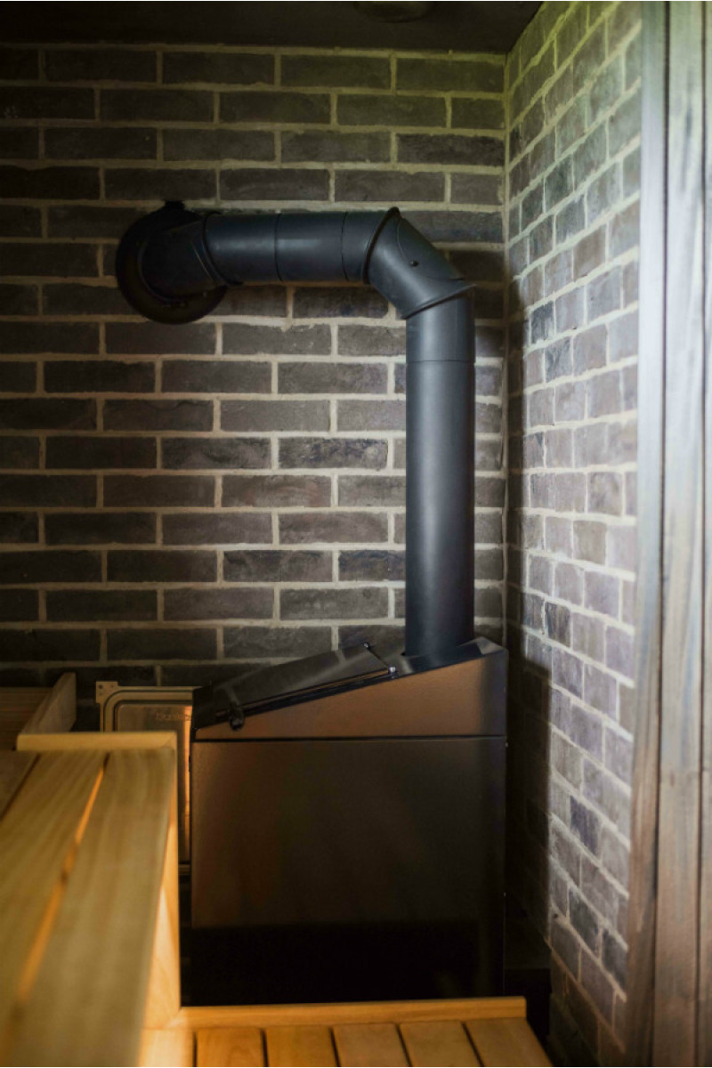 Οι τοίχοι και η οροφή, κερωμένα με ειδικό μαύρο κερί, έρχονται σε αντίθεση με τους φωτεινούς πάγκους της σάουνας, το δωμάτιο φαίνεται μοναδικό, δημιουργώντας μια ζεστή και μοντέρνα ατμόσφαιρα. Αυτή η αντίθεση πάγκων και τοίχων τονίζεται περαιτέρω από τον ενσωματωμένο λευκό φωτισμό LED που είναι ανθεκτικός στη θερμοκρασία και την υγρασία κάτω από τους πάγκους και τις πλάτες.