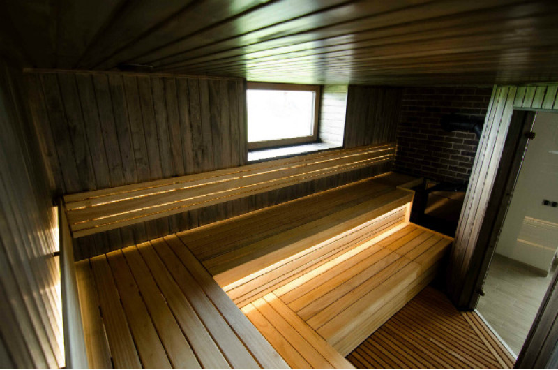 Το παράθυρο στη σάουνα δίνει στο δωμάτιο περισσότερο φως και μεγαλύτερη αίσθηση χώρου.