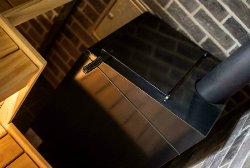Μια ανθεκτική στη θερμότητα πλάκα Minerit τοποθετείται γύρω από τη θερμάστρα για λόγους ασφαλείας.