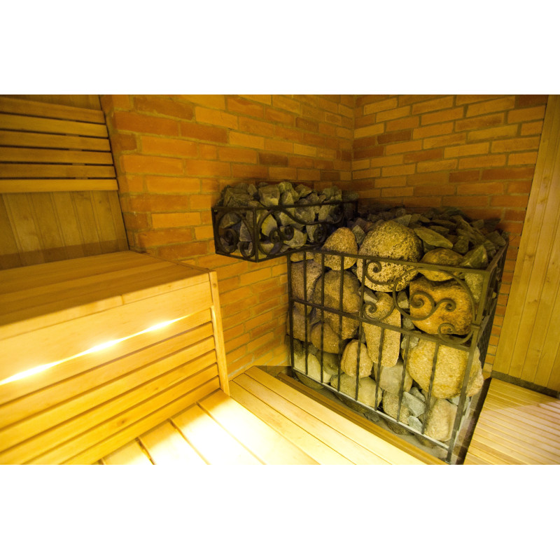 Η σάουνα έχει ακόμη και τρεις ορόφους, κατασκευασμένη από ξύλο μαύρης σκλήθρας υψηλής ποιότητας. Λόγω της αρχικής του απόχρωσης, αυτό το ξύλο δημιουργεί ένα ιδιαίτερο στυλ και κομψότητα στη σάουνα, τονίζοντας την αποκλειστικότητα και το φινίρισμα της πολυτέλειας. Επιπλέον, η μαύρη σκλήθρα χαρακτηρίζεται από μακροζωία - μια σάουνα με τέτοιο φινίρισμα θα σας ευχαριστήσει για πολλά χρόνια με άνεση και ευχάριστο μικροκλίμα.