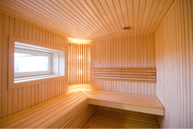 Η σάουνα έχει επίσης ένα παράθυρο που δίνει στο δωμάτιο περισσότερο χώρο και φως.