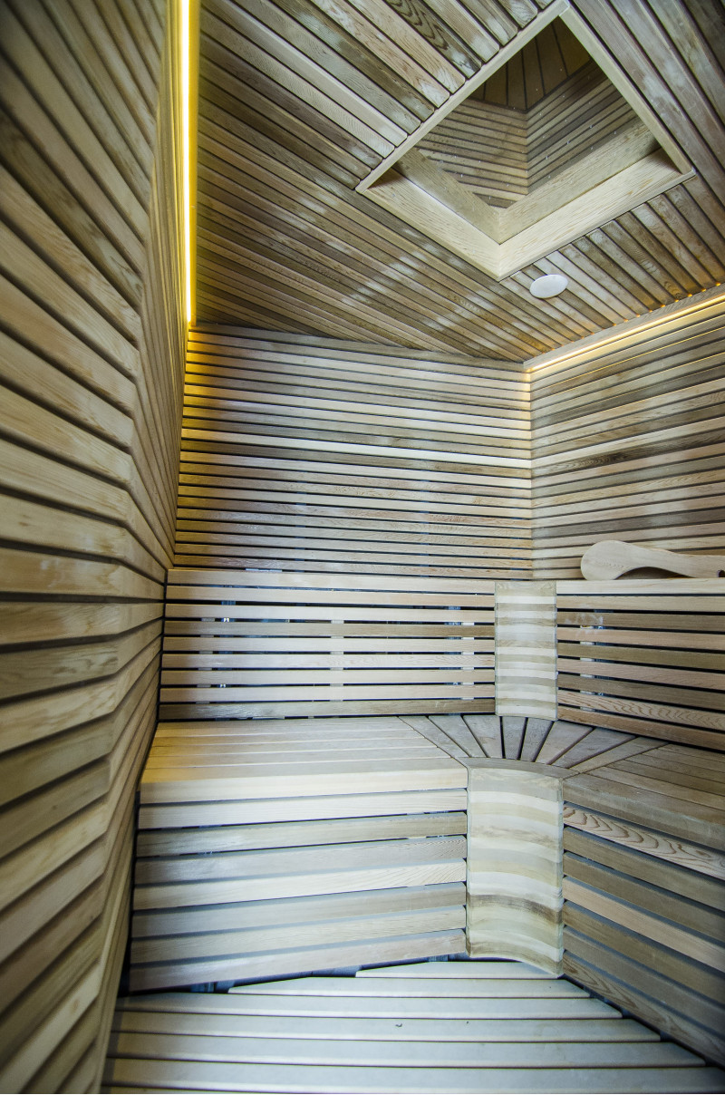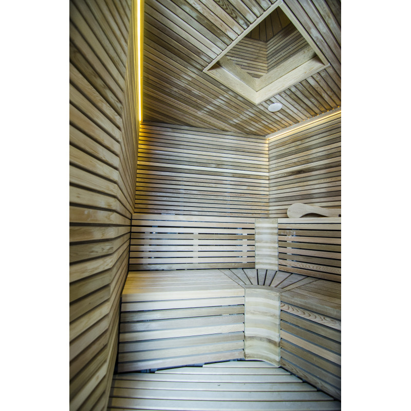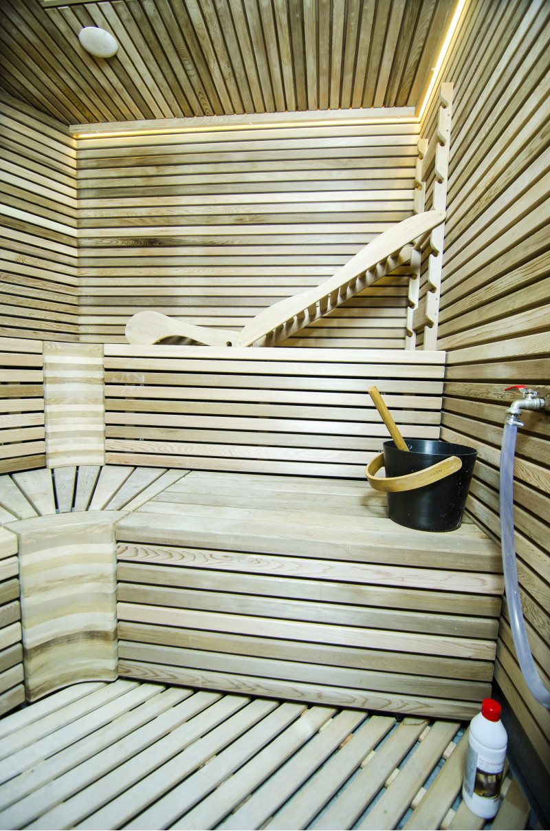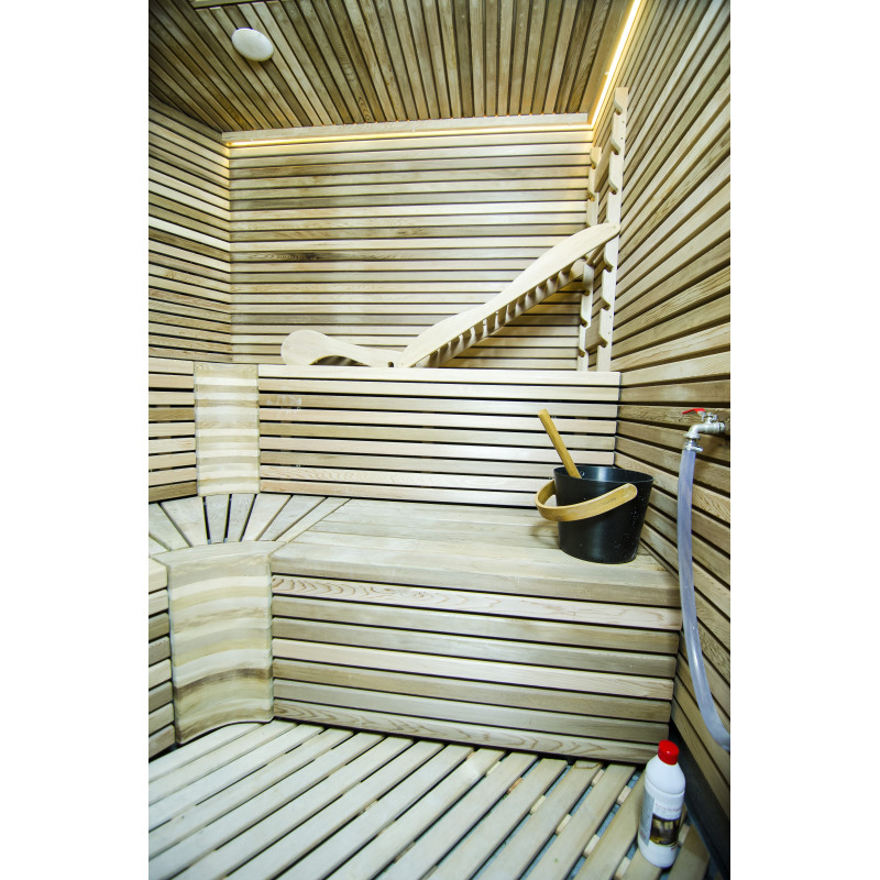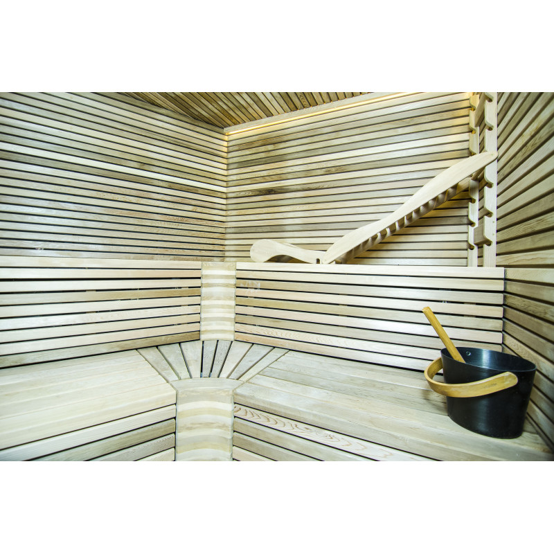 Οι τοίχοι και οι πάγκοι της σάουνας είναι κατασκευασμένοι από άριστης ποιότητας ξύλο κέδρου.