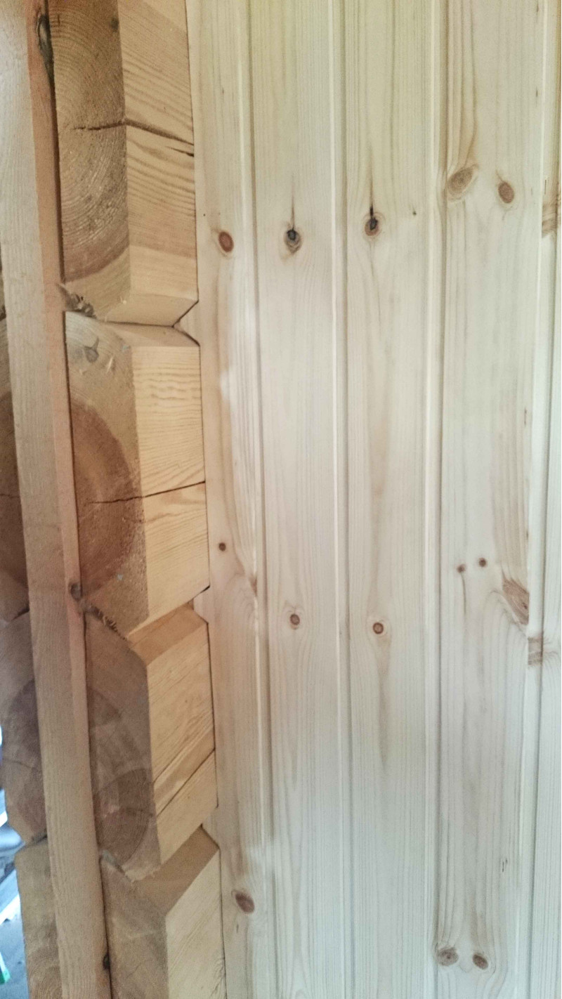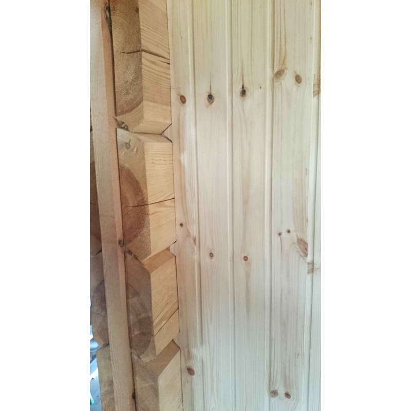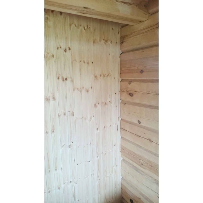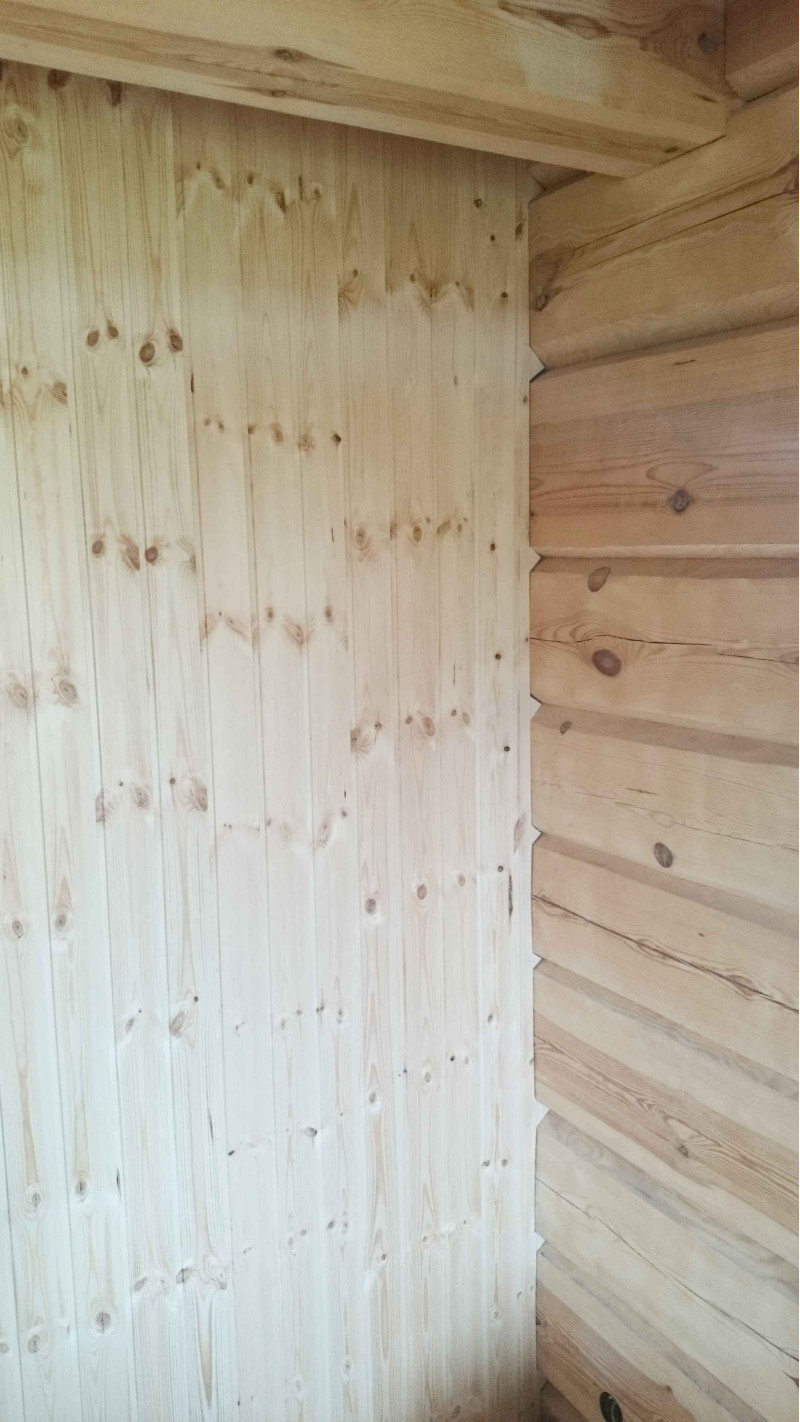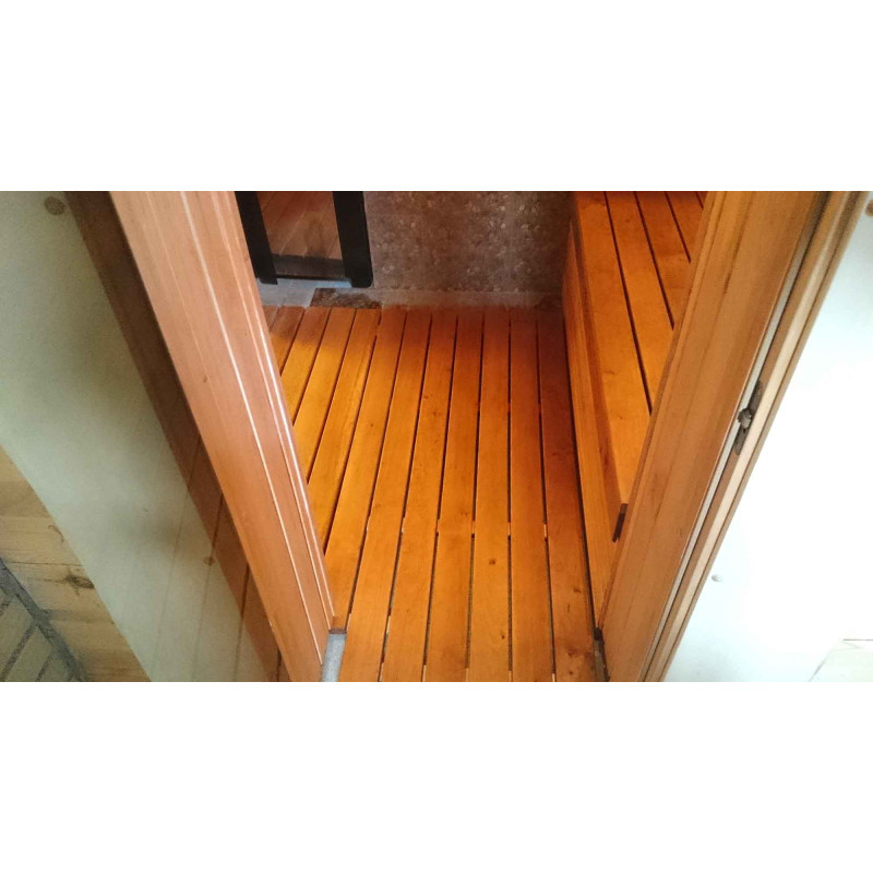 Εσωτερική διακόσμηση - υψηλής ποιότητας μαύρη σκλήθρα. Η επένδυση μαύρης σκλήθρας ανέχεται τέλεια τις μεγάλες διαφορές θερμοκρασίας, δεν ραγίζει ή παραμορφώνεται. Η θέρμανση εκπέμπει μια υπέροχη και ελαφριά μυρωδιά φυσικού ξύλου, η οποία παρέχει άνεση στις διαδικασίες σάουνας. Η μαύρη σκλήθρα δεν θερμαίνεται σε μια ζεστή σάουνα, επομένως είναι αδύνατο να καεί σε επαφή με την επιφάνεια.