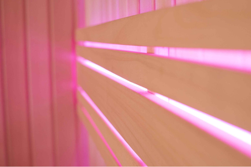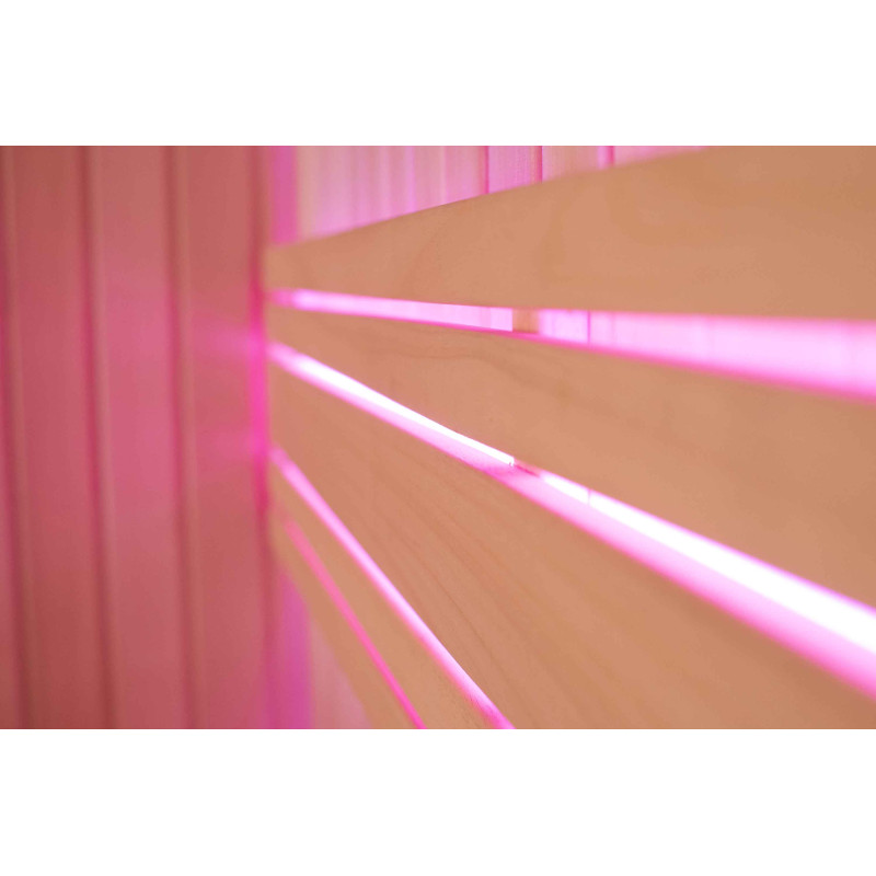 Ο έγχρωμος φωτισμός LED κάτω από τις ξαπλώστρες και τις πλάτες είναι ρυθμιζόμενος στον πίνακα. Μπορείτε να αλλάξετε το εύρος και την ένταση των χρωμάτων χειροκίνητα ή αυτόματα.