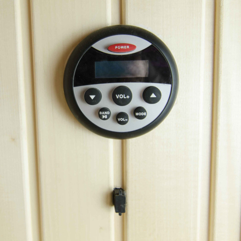 Ένα μοντέρνο έργο σάουνας για ιδιωτική χρήση υλοποιήθηκε στο Melnrage. Υπήρχε μια γωνιά στο χώρο του μπάνιου για τις απολαύσεις μιας οικογενειακής σάουνας. Τα μεγάλα παράθυρα της βιτρίνας της σάουνας ανοίγουν στη θέα της φύσης μέσα από το παράθυρο του μπάνιου, εξασφαλίζοντας μια σταθερή πηγή φωτός και διευρύνοντας οπτικά το χώρο του όχι πολύ μεγάλου δωματίου σάουνας. Εκτός από την υπέροχη θέα, η απόλαυση της σάουνας ενισχύεται από τον ενσωματωμένο μουσικό εξοπλισμό ήχου. Το media player είναι ειδικά προσαρμοσμένο για χρήση σε μια ζεστή, υγρή σάουνα. Διαθέτει σύνδεση USB, Bluetooth, ραδιόφωνο, οθόνη LCD, κουμπιά ελέγχου από καουτσούκ. Τα ηχεία είναι επίσης ανθεκτικά στην υγρασία της σάουνας, στη διάβρωση και τη θερμοκρασία.