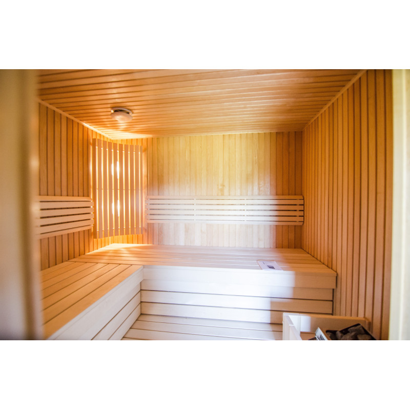 Φωτισμός - δύο λαμπτήρες Harvia τοποθετημένοι κάτω από την πλάτη.