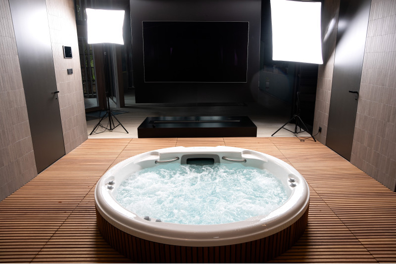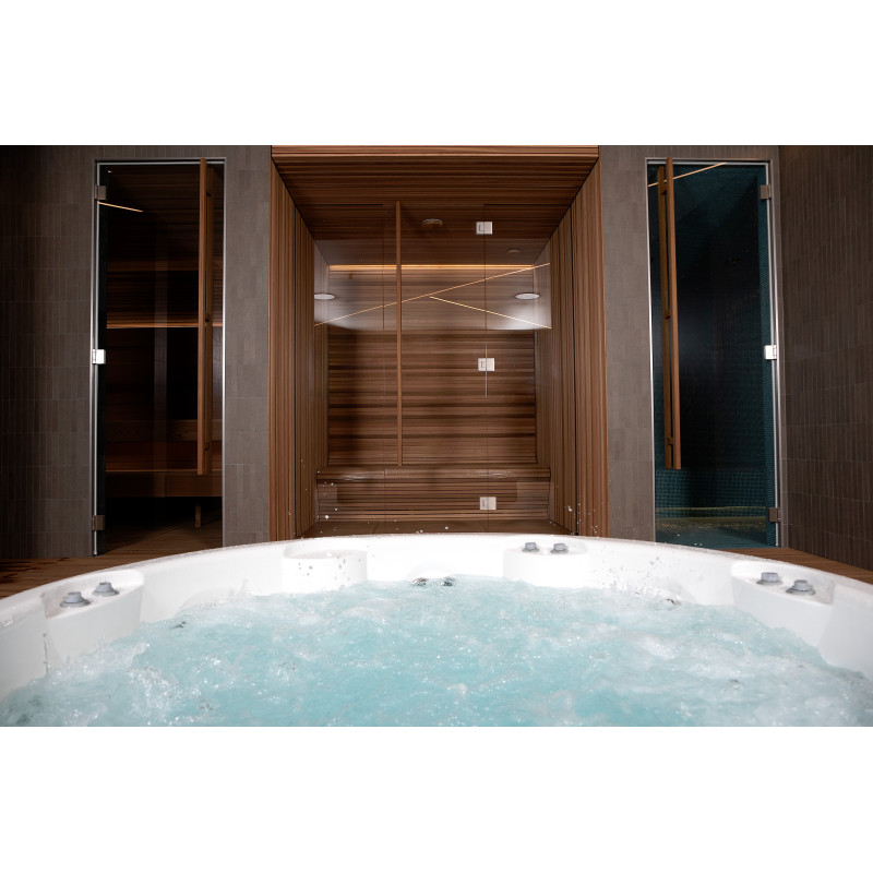 Για αυτό το έργο επιλέχθηκε μια πισίνα υδρομασάζ του αρχικού κατασκευαστή "Jacuzzi" , με όλες τις διαδικασίες σύνδεσης, εκκίνησης και δοκιμών να έχουν ολοκληρωθεί σε πλήρη συμφωνία με τα τεχνικά πρότυπα. Αυτή η πισίνα αποτελεί σύμβολο άνεσης και αξιοπιστίας, εξασφαλίζοντας μια εμπειρία χαλάρωσης πρώτης κατηγορίας.