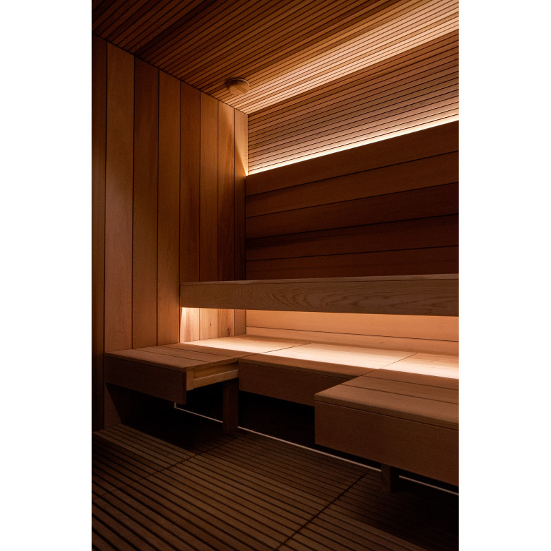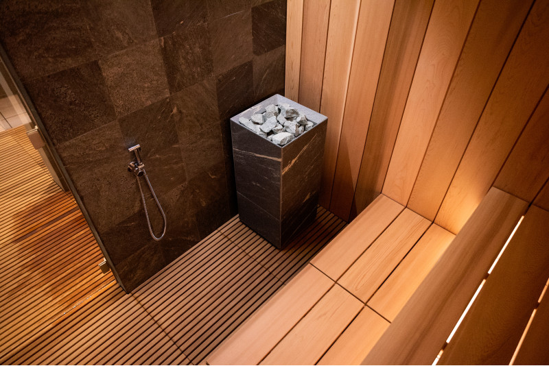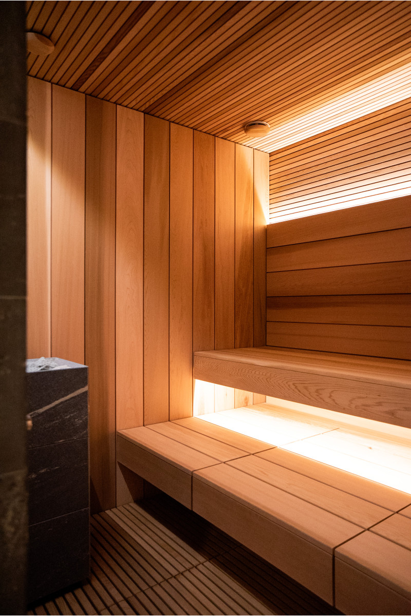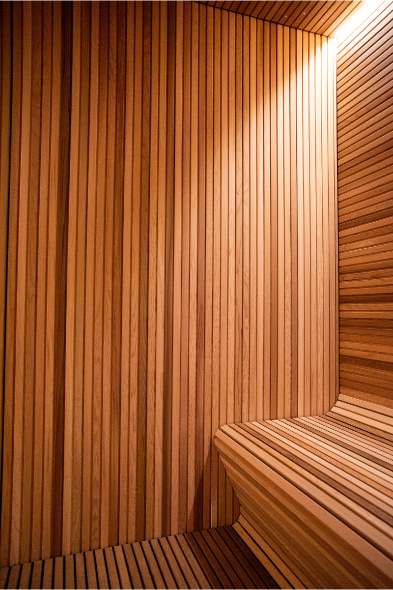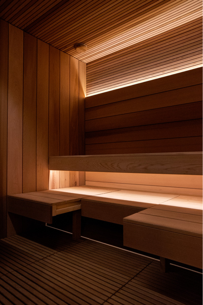 Η σάουνα περιλαμβάνει έναν εκλεπτυσμένο συνδυασμό σχεδιασμού και ποιότητας: