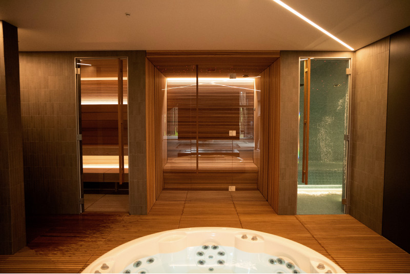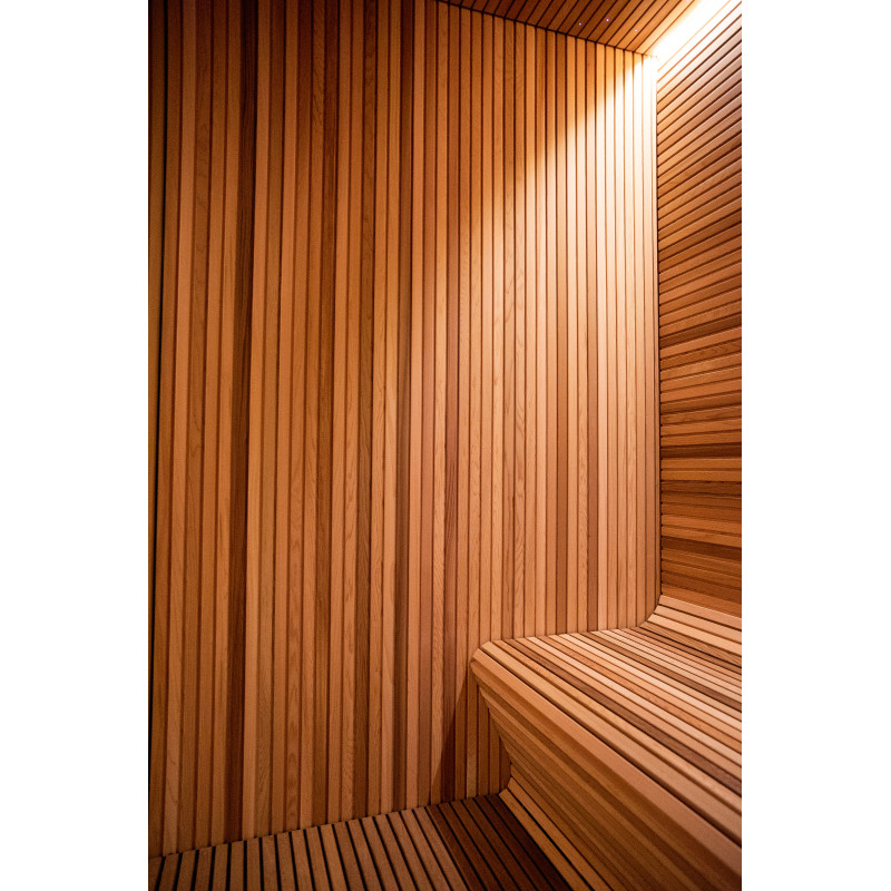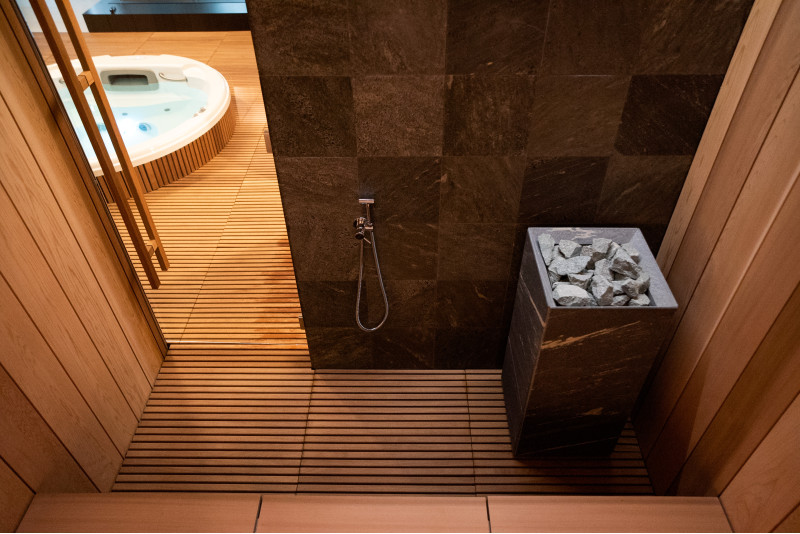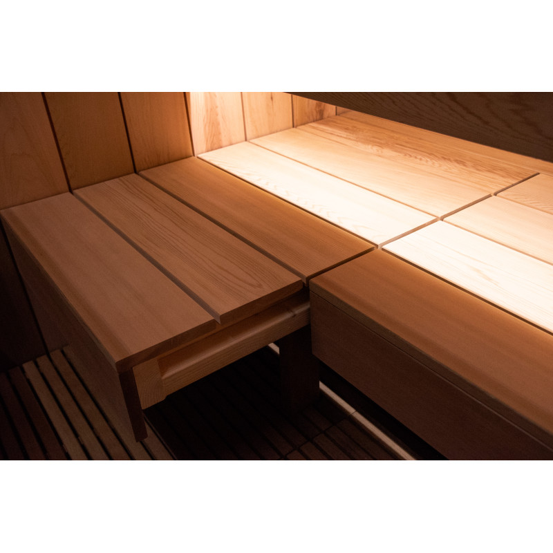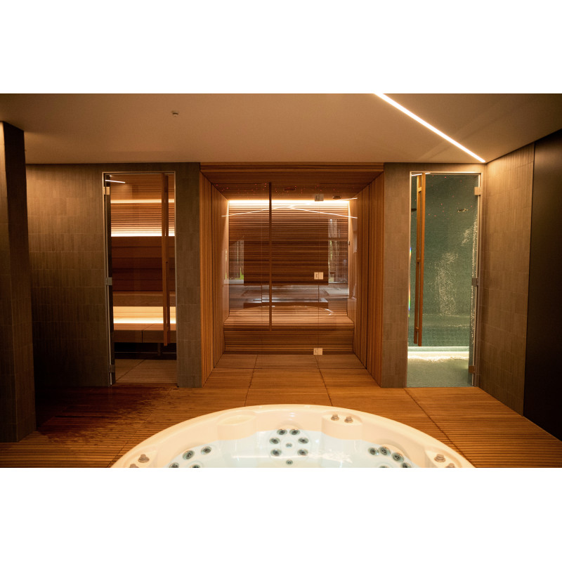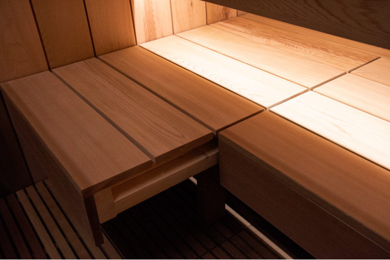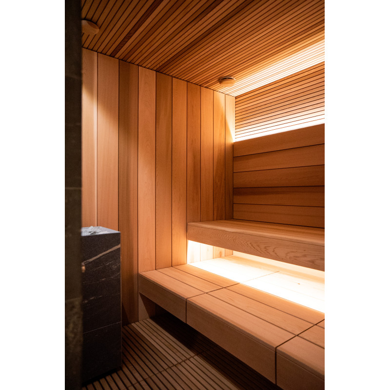 Η σάουνα περιλαμβάνει έναν εκλεπτυσμένο συνδυασμό σχεδιασμού και ποιότητας: