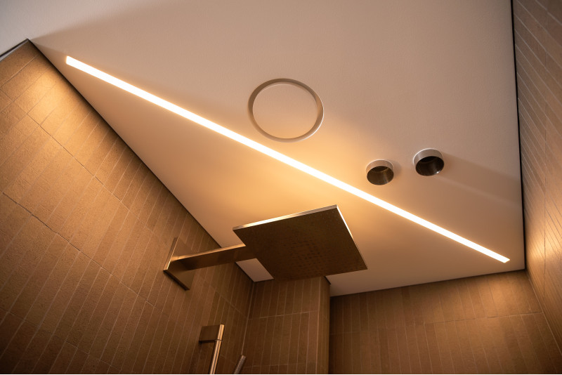 Στην περιοχή του ντους , έχει εγκατασταθεί μια επαγγελματική συσκευή έκπλυσης, η οποία διαθέτει δεξαμενή από ανοξείδωτο χάλυβα, βαλβίδες εκκένωσης, διακλαδώσεις διανομής και πνευματική σκανδάλη.