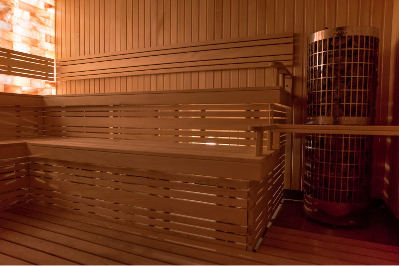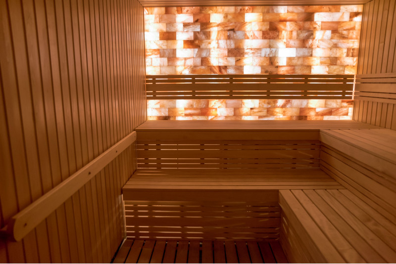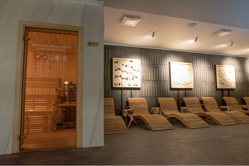 Για τον φωτισμό της σάουνας χρησιμοποιήθηκαν 4 λαμπτήρες ανθεκτικοί στην υγρασία και τη θερμοκρασία και φωτισμός LED πίσω από τον τοίχο αλατιού των Ιμαλαΐων.