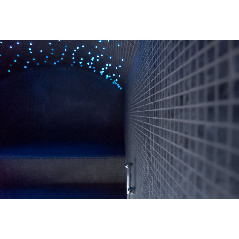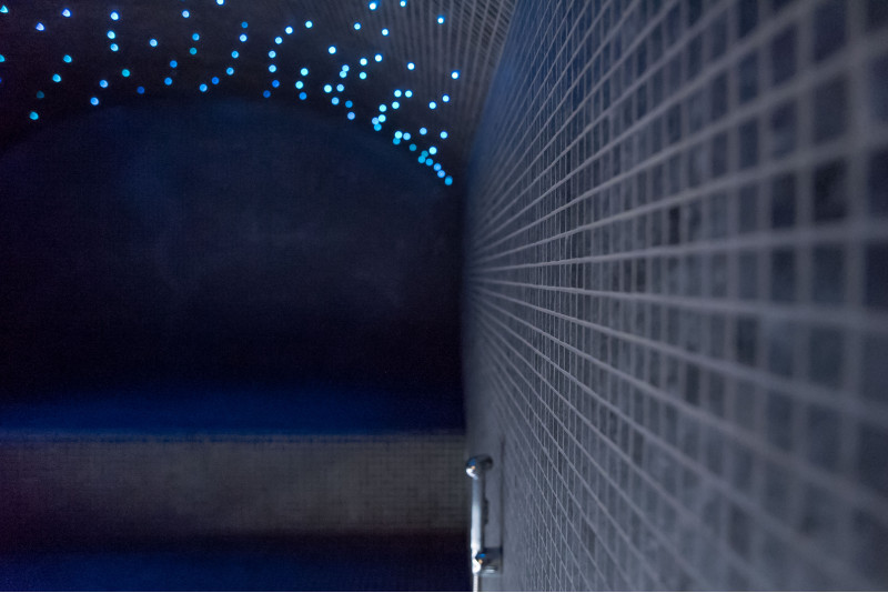 Κάτω από τα παγκάκια - φωτισμός LED ανθεκτικός στην υγρασία και τη θερμοκρασία, που φωτίζει το πάτωμα. Το σύστημα φωτισμού οπτικών ινών «Starry Sky» επιλέχθηκε για να φωτίσει την τοξωτή οροφή, τα χρώματα της οποίας αλλάζουν εύκολα και γρήγορα με τον πίνακα ελέγχου.