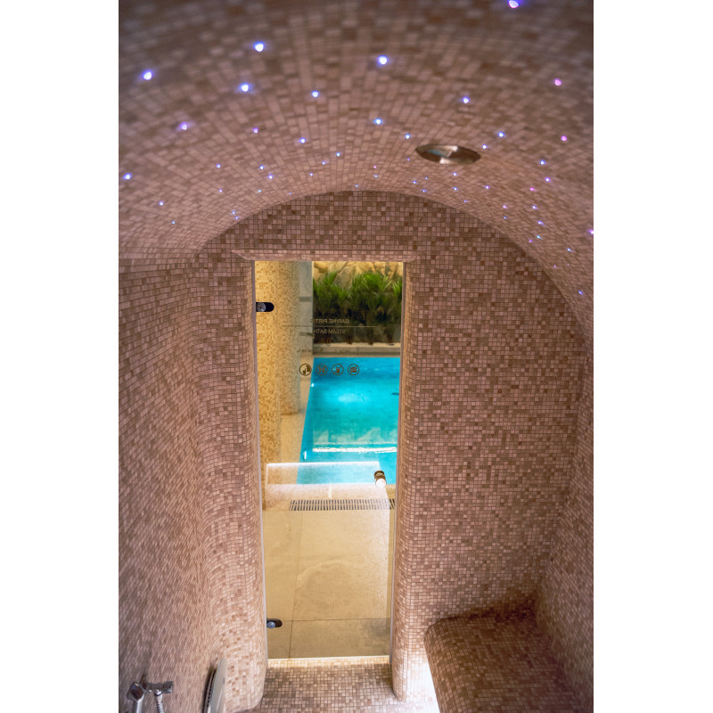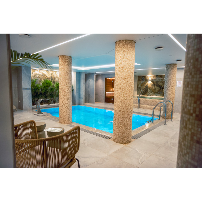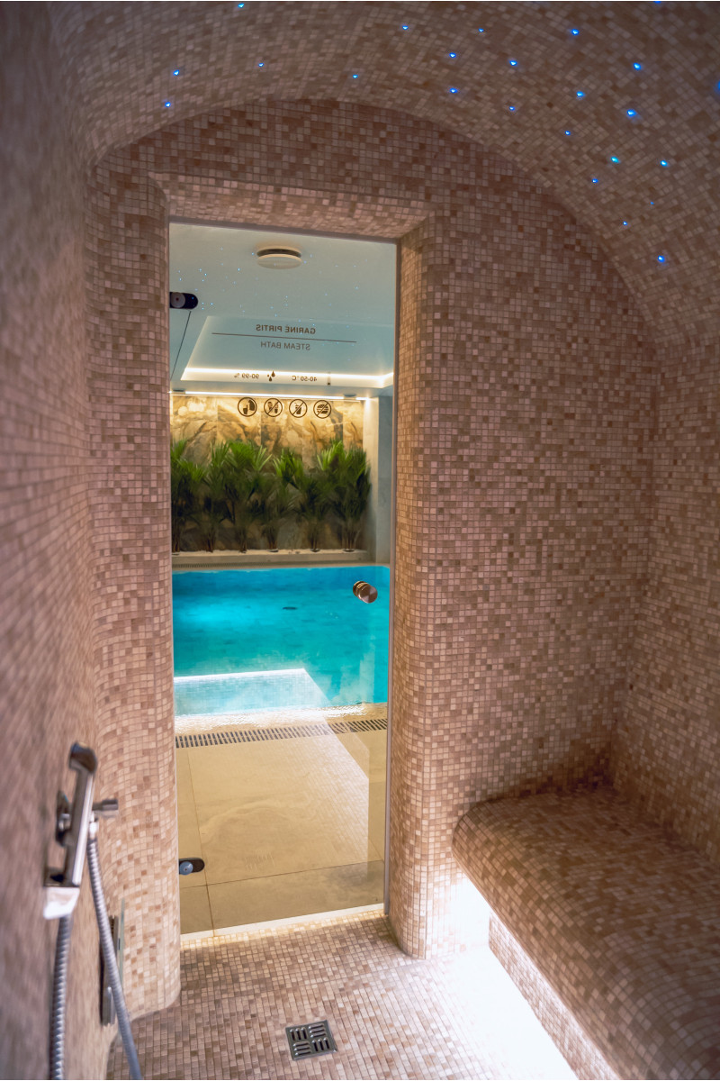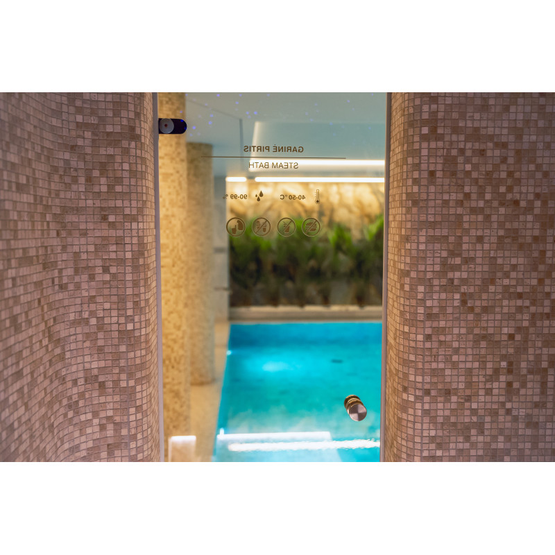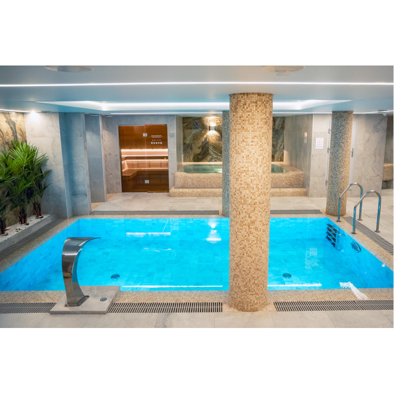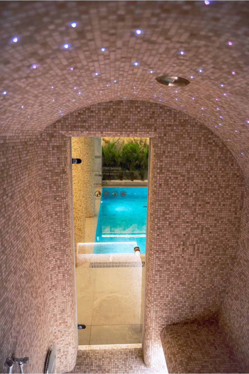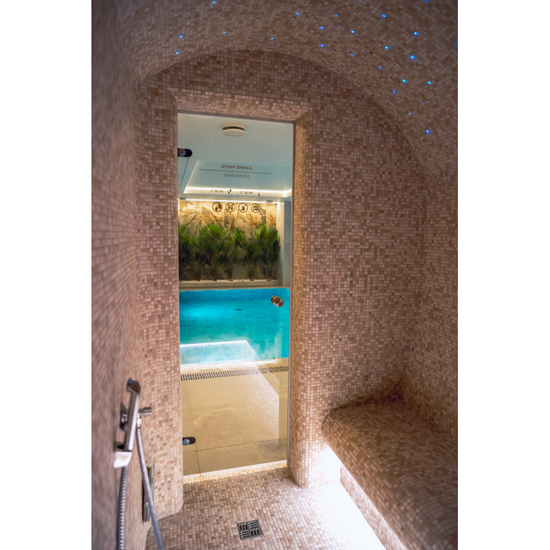 Το συγκρότημα περιλαμβάνει ατμόλουτρο, σάουνα, γεννήτρια πάγου και πισίνα με πίδακα μασάζ και υδρομασάζ.