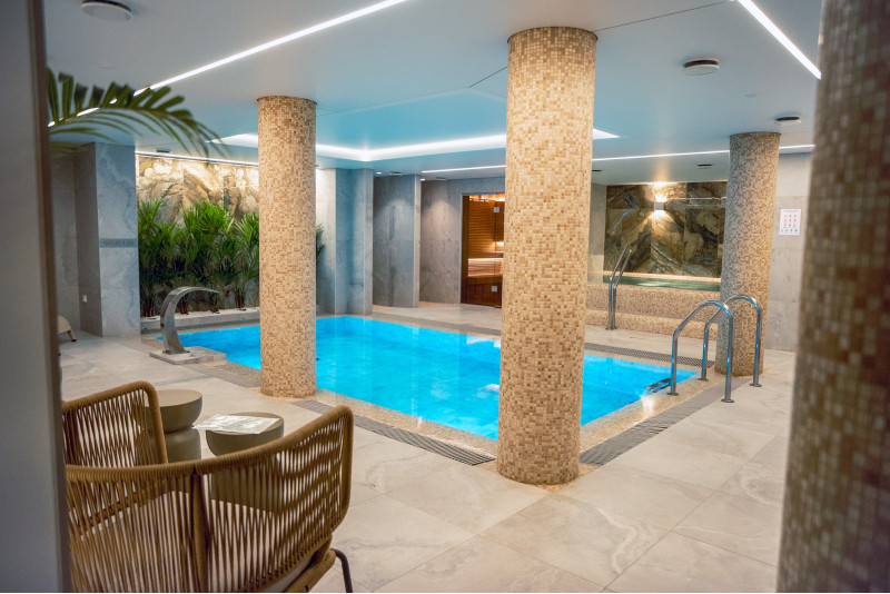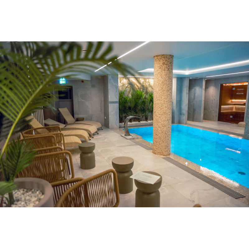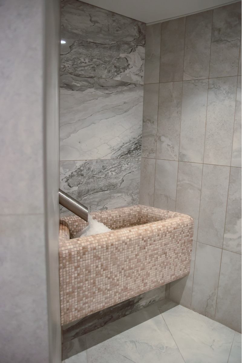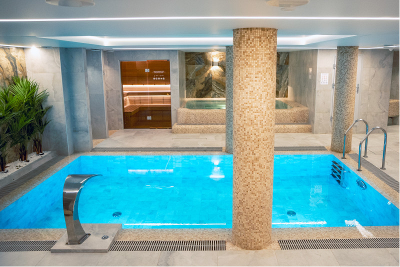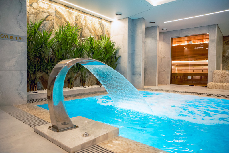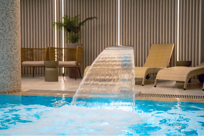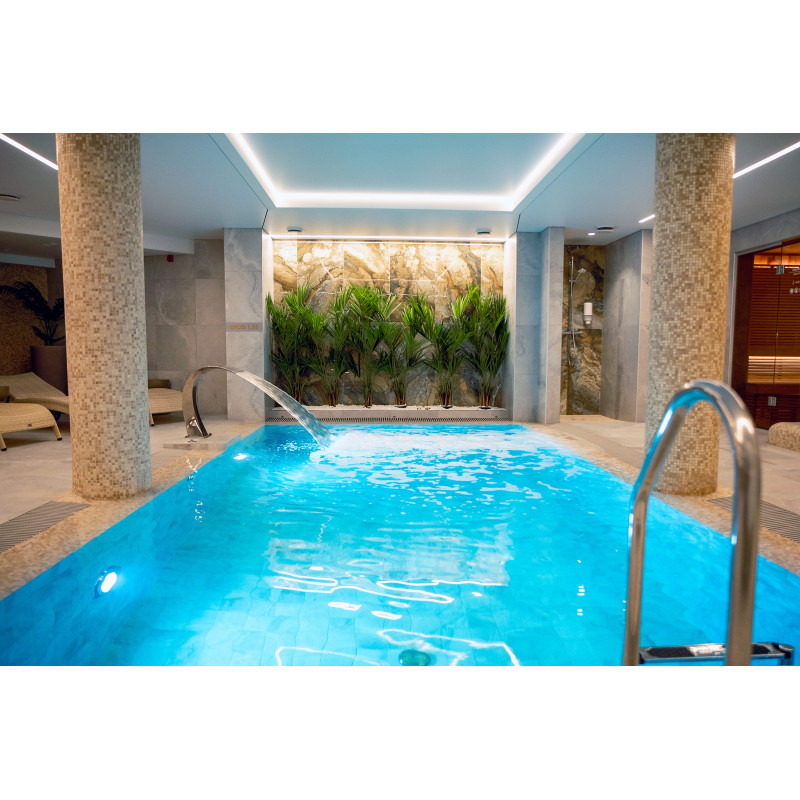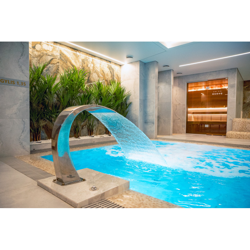Το συγκρότημα περιλαμβάνει ατμόλουτρο, σάουνα, γεννήτρια πάγου και πισίνα με πίδακα μασάζ και υδρομασάζ.