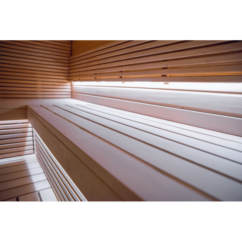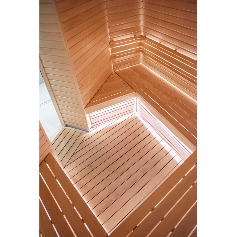 Κάτω από τις κουκέτες τοποθετούνται θερμάστρες υπερύθρων EOS και στοιχεία άνθρακα, που ελέγχονται από το Harvia Xenio Combi CX36I.
