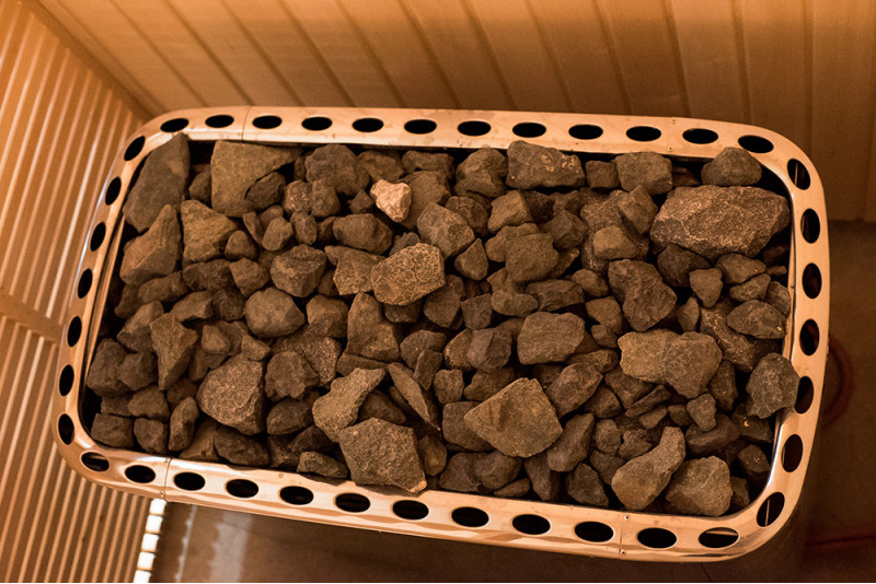 - 200 κιλά πέτρες σάουνας χρησιμοποιήθηκαν για να γεμίσουν τις σόμπες.