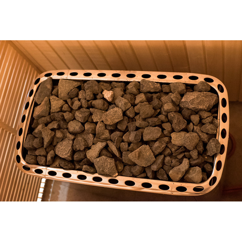 - Η σόμπα είναι γεμάτη με 80 κιλά πέτρες σάουνας.