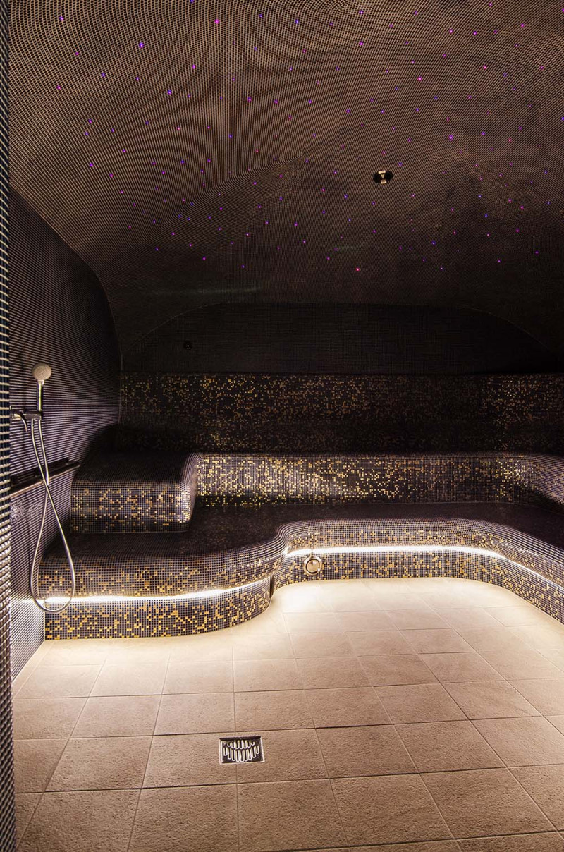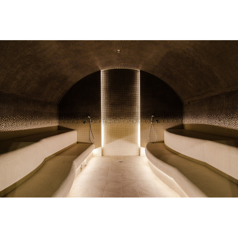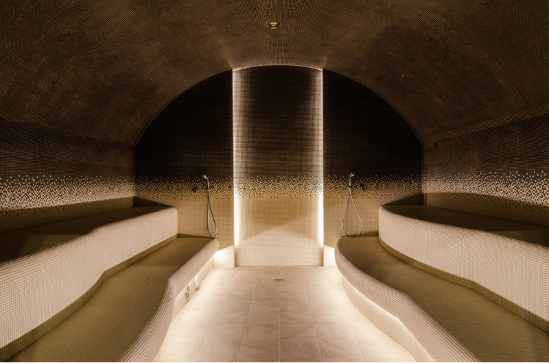 Οι εσωτερικές επιφάνειες αποτελούνται από διογκωμένο πολυστυρένιο χρησιμοποιώντας συνεχή κοπή EPS στυρόλιο. Αψίδα οροφής. Πάγκοι - ξαπλώστρες σύμφωνα με ένα μεμονωμένο έργο. Βάζα ατμού, με σχάρα. Οι εσωτερικές επιφάνειες της σάουνας ενισχύονται με ένα μείγμα ενίσχυσης με πλέγμα, η επιφάνεια ισοπεδώνεται και στεγνώνει.
