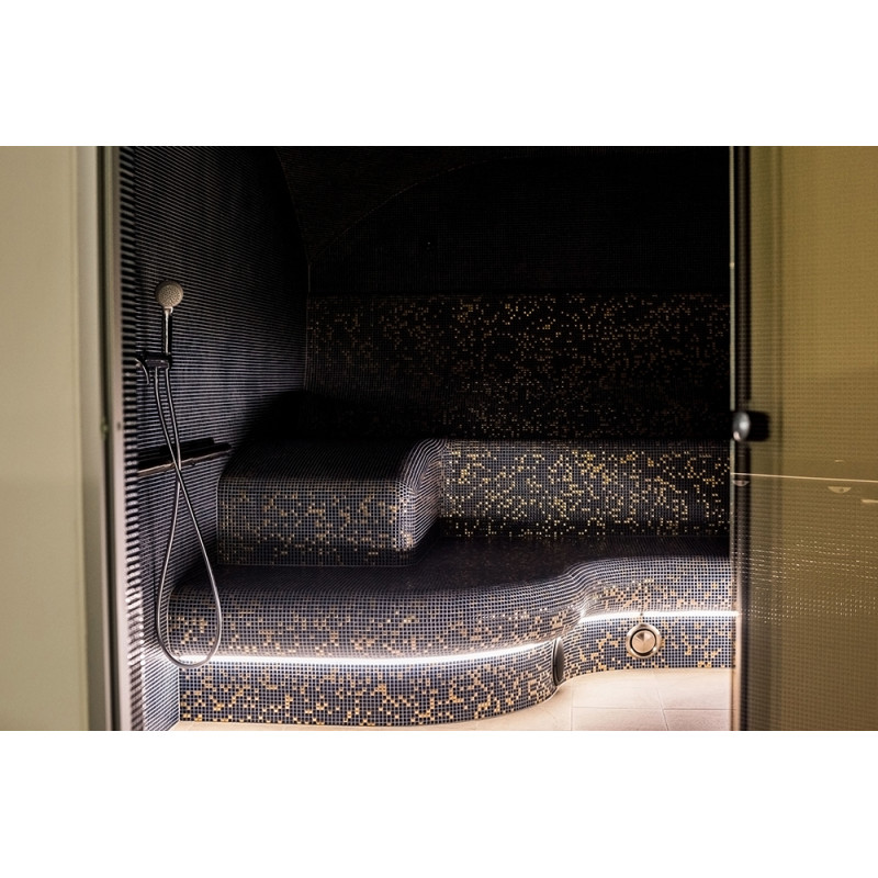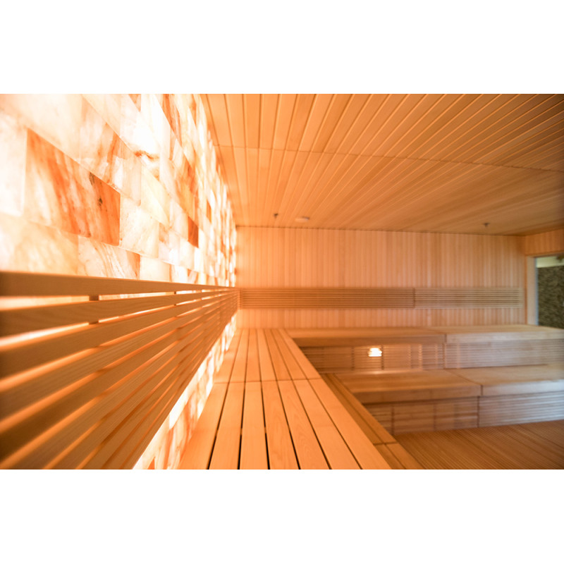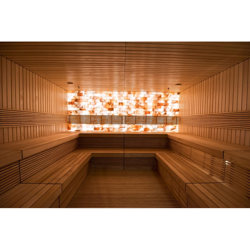 Τουβλάκια αλατιού Ιμαλαΐων που επιλέχθηκαν για τη διακόσμηση των τοίχων της σάουνας με ενσωματωμένο φωτισμό δημιουργούν μια ζεστή ατμόσφαιρα και ενισχύουν περαιτέρω το αποτέλεσμα της σάουνας. Τα άλατα των Ιμαλαΐων είναι ένας φυσικός ιονιστής που βελτιώνει αποτελεσματικά την ποιότητα του αέρα εκπέμποντας αρνητικά ιόντα. Ο αρνητικά ιονισμένος αέρας βελτιώνει την υγεία, βοηθά στη θεραπεία πολλών παθήσεων, όπως: βρογχικό άσθμα, πνευμονικές και βρογχικές ασθένειες, μεταπληξία, υπέρταση, γαστρεντερικά έλκη, γαστρίτιδα, ασθένειες του θυρεοειδούς, δερματίτιδα, διάφορες αλλεργίες, νευρικές ασθένειες, βοηθά στην αντιμετώπιση του εγκεφαλικού. Υπάρχουν δύο οφέλη από τη χρήση σάουνας σε σάουνα με άλατα Ιμαλαΐων.