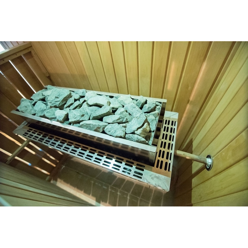 - Η σάουνα θερμαίνεται από ηλεκτρική θερμάστρα - Harvia Profi. Αυτός ο θερμαντήρας έχει σχεδιαστεί για τα μεγαλύτερα δημόσια λουτρά. Εξαιρετικά ισχυρή κατασκευή από ανοξείδωτο ατσάλι.