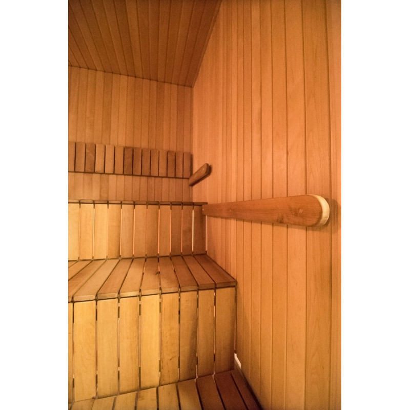 Οι λεπτομέρειες της σάουνας και οι εσωτερικές ξύλινες λεπτομέρειες είναι κατασκευασμένες από ξύλο linden τύπου Α. Έχει σχηματιστεί ένας φράχτης για τη θερμάστρα. Το ξύλο είναι εμποτισμένο και βερνικωμένο, λαδωμένο - ειδικά προετοιμασμένο για χρήση σε υψηλές θερμοκρασίες και υγρασία.