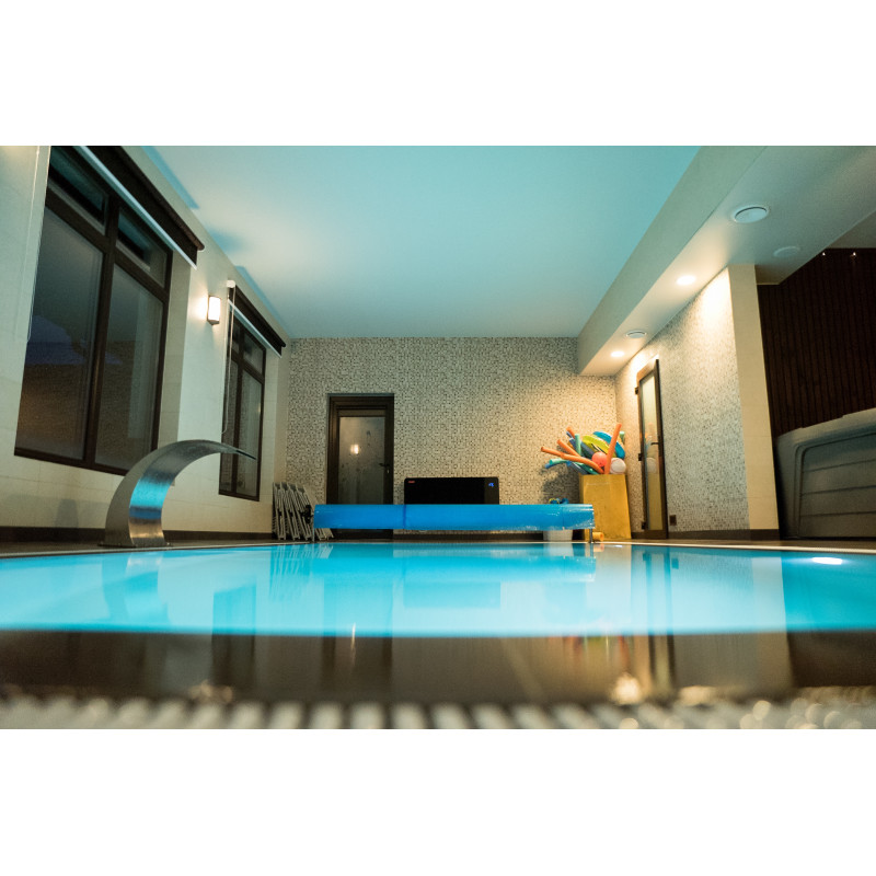 Η ευρύχωρη πισίνα είναι εξοπλισμένη με αντίθετο ρεύμα κολύμβησης και έναν καταρράκτη νερού. Η πισίνα είναι μεγάλη διασκέδαση για όλη την οικογένεια.