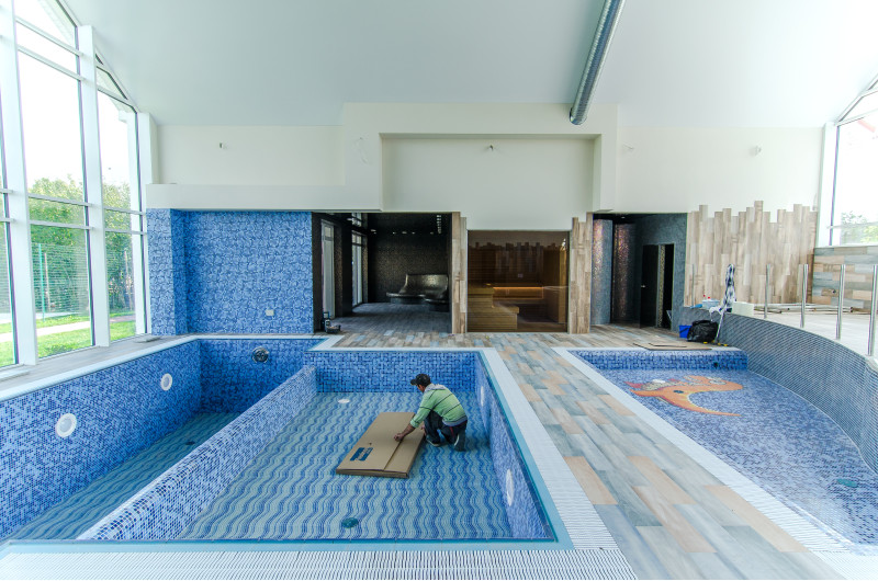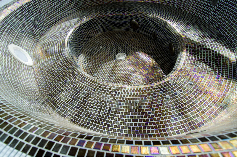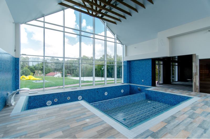 Πισίνα υδρομασάζ - 8 θέσεις. Εξοπλισμένο με σκυρόδεμα. Το εσωτερικό είναι καλυμμένο με ψηφιδωτά πλακάκια. Υποβρύχιο φωτιστικό LED, πίδακες μασάζ, εξοπλισμός φιλτραρίσματος, εξοπλισμός αυτόματης δοσομέτρησης χημικών.