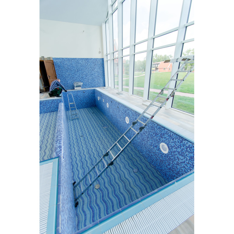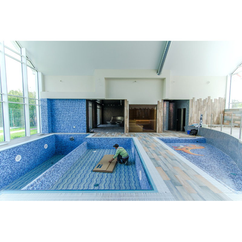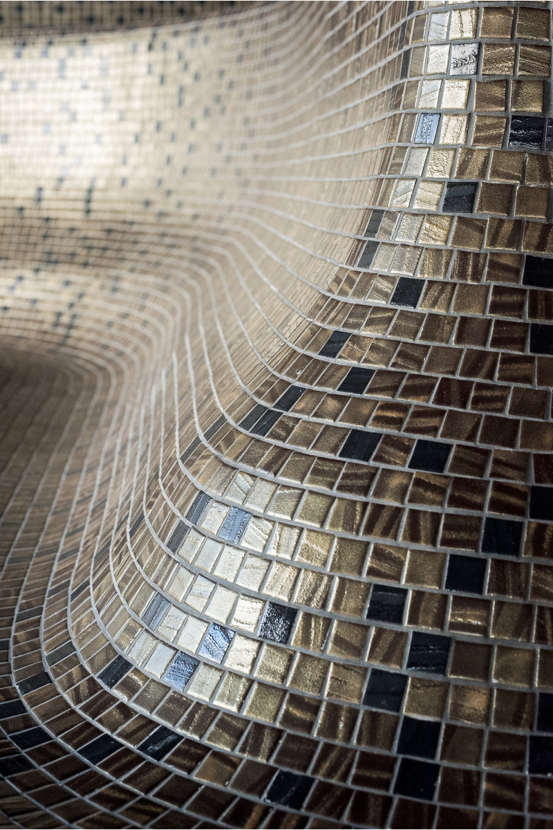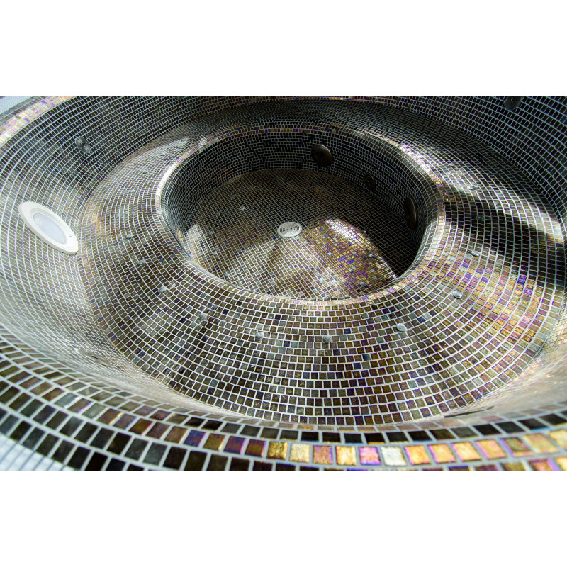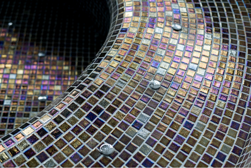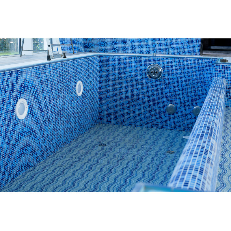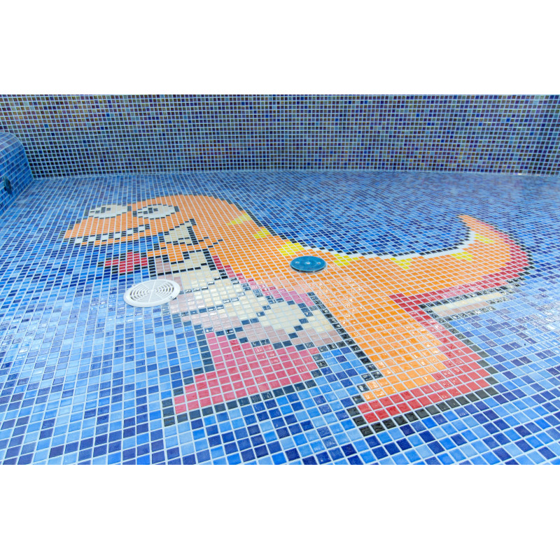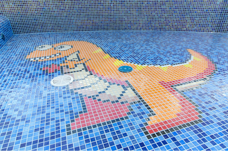 Η πισίνα βάθους 15 cm είναι σχεδιασμένη για τους πιο μικρούς λάτρεις του νερού. Το κάτω μέρος του είναι διακοσμημένο με ένα πολύχρωμο ψηφιδωτό σχέδιο.