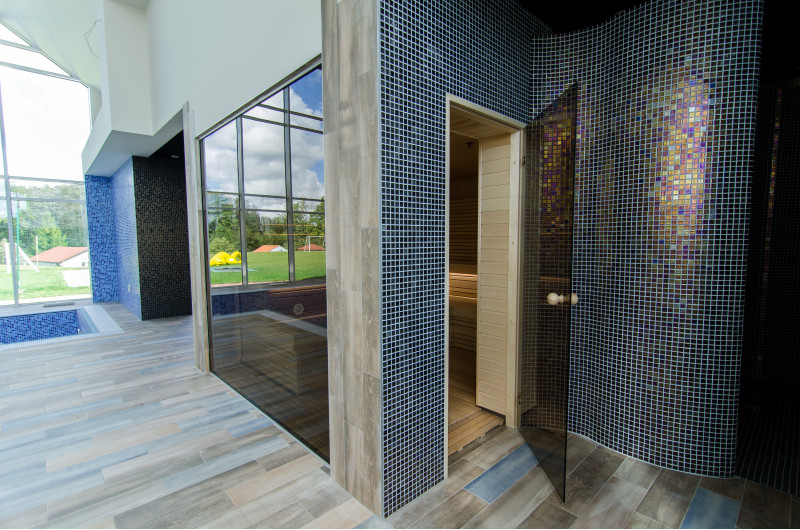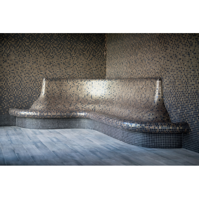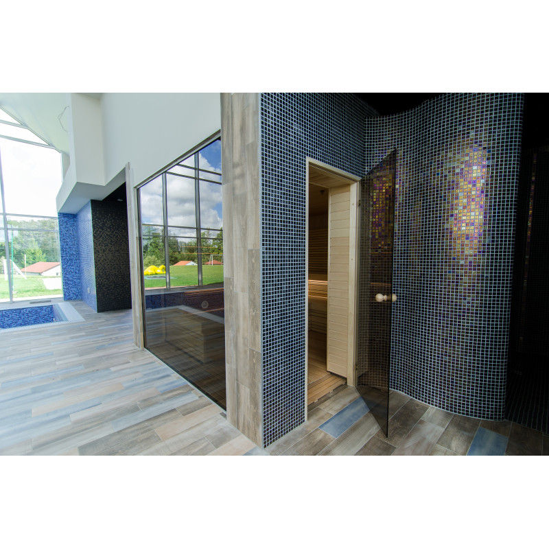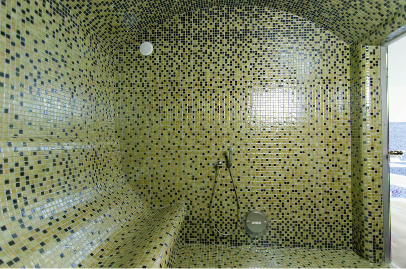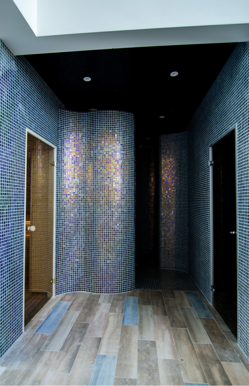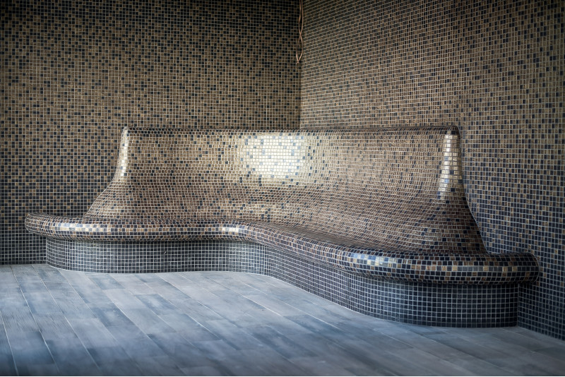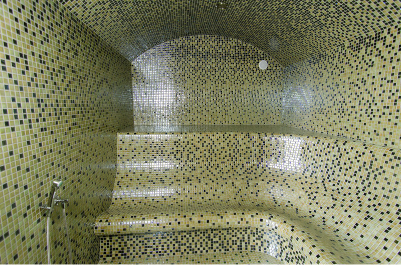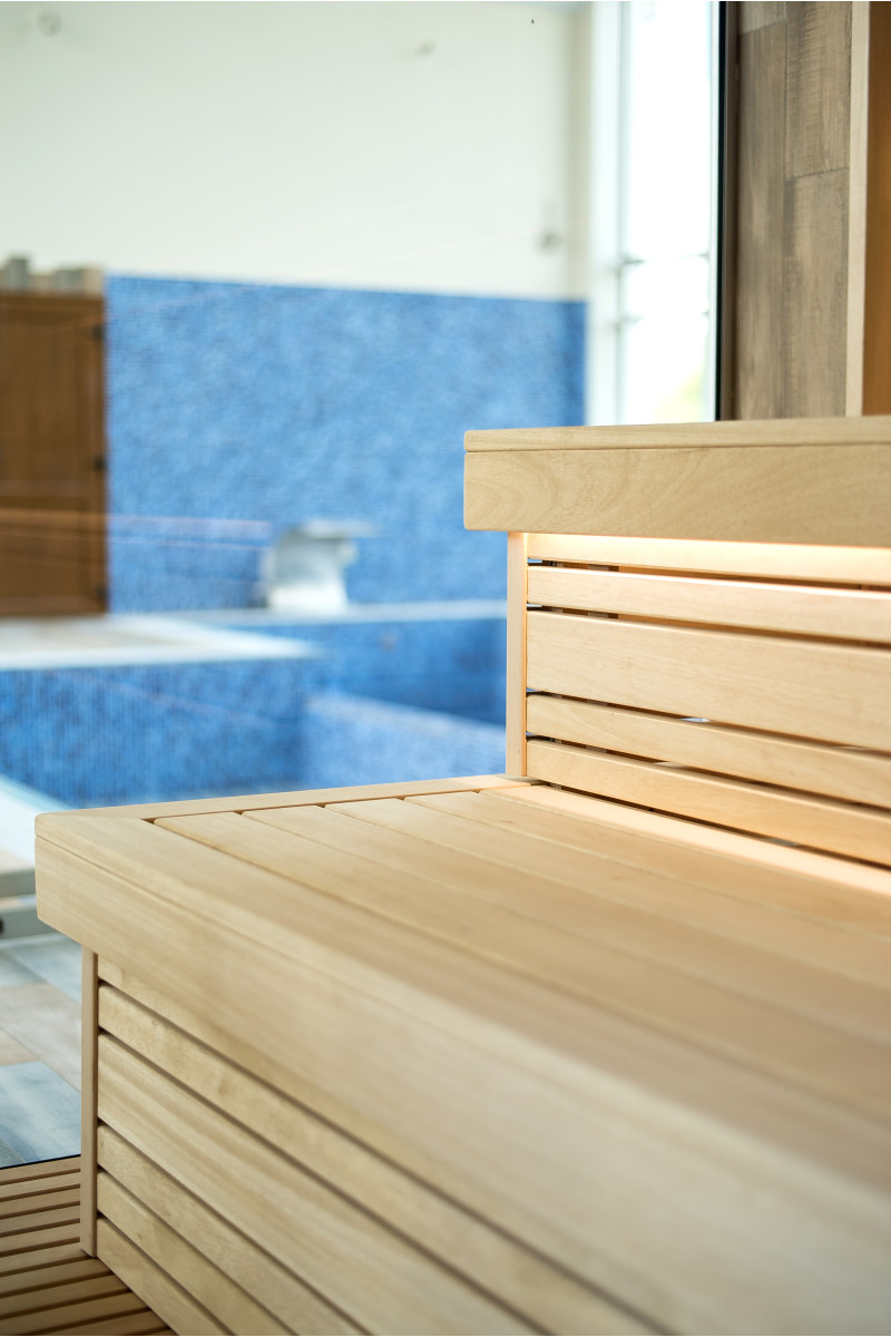 Σάουνα. Οι εσωτερικές ξύλινες λεπτομέρειες της σάουνας είναι κατασκευασμένες από ξύλο abachi, η οροφή και οι τοίχοι από ξύλο Ιουλίου. Χαρακτηριστικά: