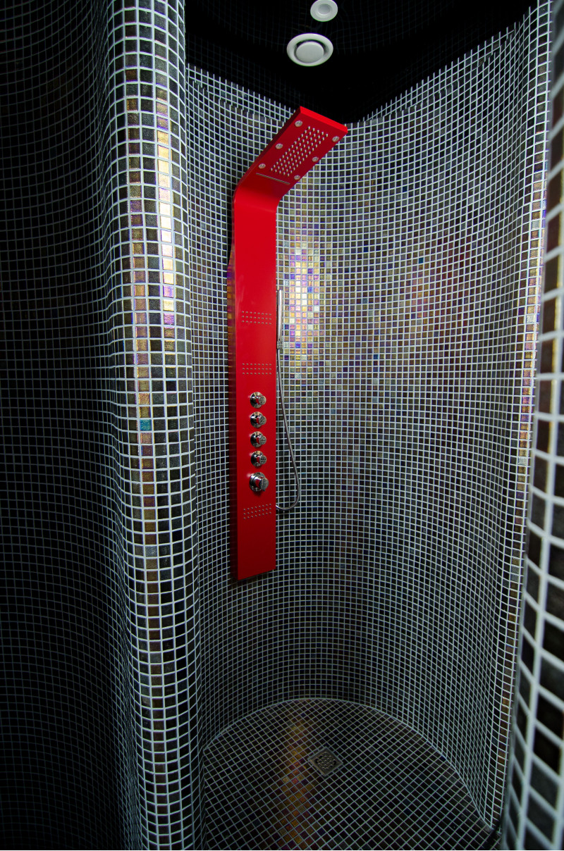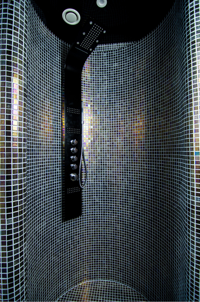 3 καμπύλες ντουζιέρες. Εξοπλισμένο με στρογγυλές καμπίνες ντους με ενίσχυση και στεγανοποίηση. Ένα από τα ντους έχει δρύινο κουβά με πλαστικό ένθετο.