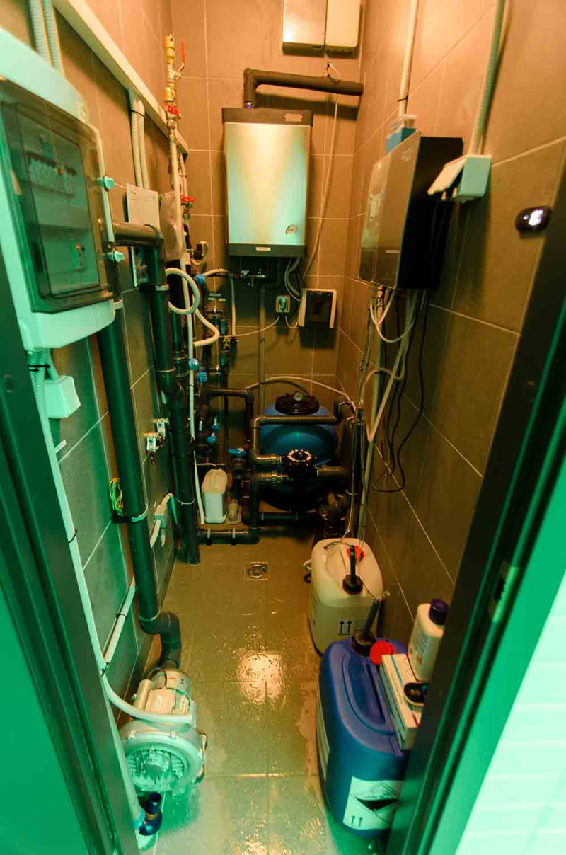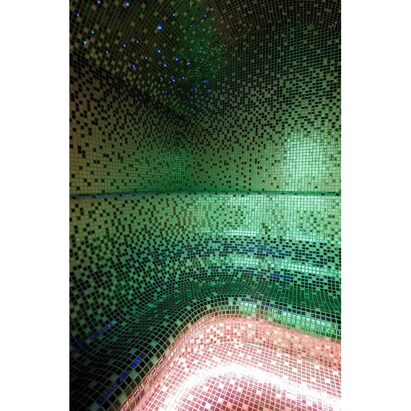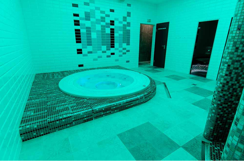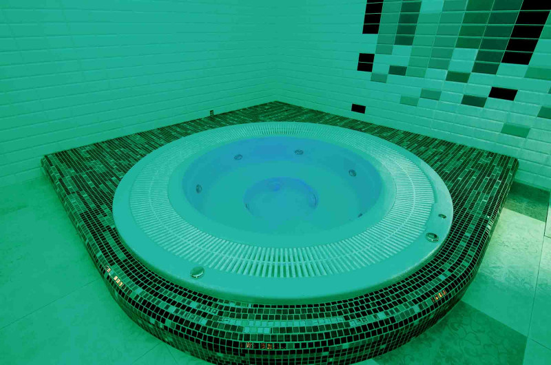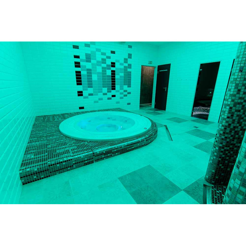 Πισίνα υδρομασάζ - εμπορική. Πλακάκια γύρω από την πισίνα - μωσαϊκό από γυαλί. Εξοπλισμός: