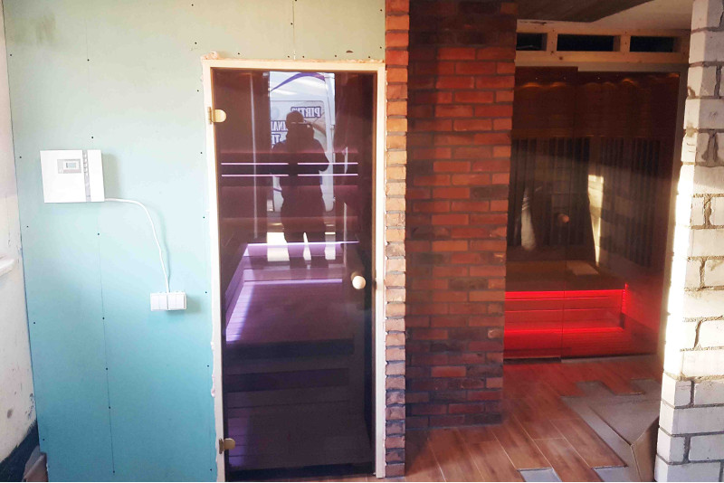 Εξοπλισμός σάουνας: Υπέρυθρη θερμάστρα HARVIA CARBON με προστατευτική γρίλια, πίνακας ελέγχου Harvia Griffin Infra CG170I. Αυτός ο πίνακας μπορεί να χρησιμοποιηθεί για τον έλεγχο του χρόνου λειτουργίας, της θερμοκρασίας, του φωτισμού και του αερισμού. Το χρονόμετρο μπορεί να χρησιμοποιηθεί για να ρυθμίσετε πότε η σάουνα πρέπει να είναι έτοιμη. Ο ψηφιακός πίνακας ελέγχου χρωμίου είναι απόλυτα συμβατός με άλλο σύγχρονο εξοπλισμό σάουνας.